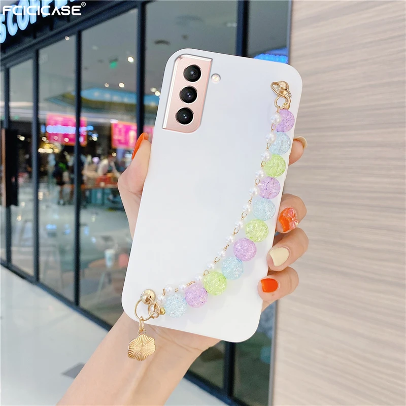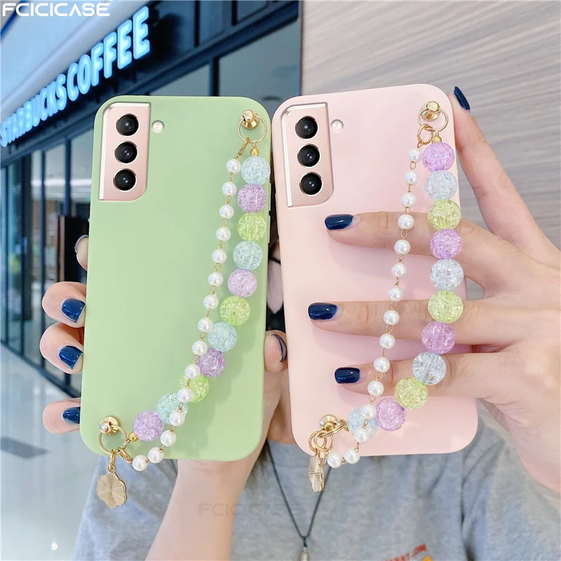 Мягкий чехол-накладка с бусинами, браслетом и цепочкой для Samsung Galaxy S21 FE S20 ultra S8 S9 Plus S10 Lite NOTE 20 10 8 9