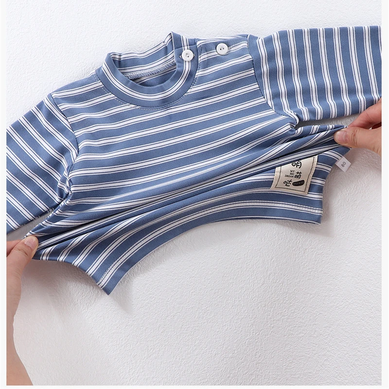 Детские пижамы с бархатной подкладкой, теплые полосатые комплекты детской одежды, плотная водолазка для маленьких мальчиков и девочек, 2 шт., детские пижамы унисекс, детская одежда