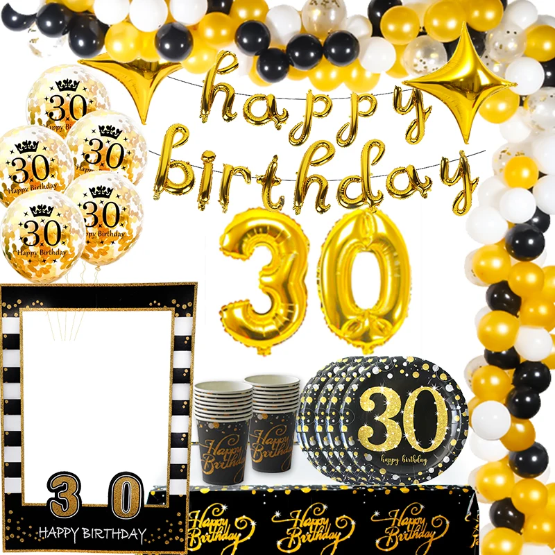 Золотой черный 30-й взрослый баннер на день рождения баннеры флаги 30 лет Торт Топперы на день рождения латексные шары с днем рождения Декор для вечеринки