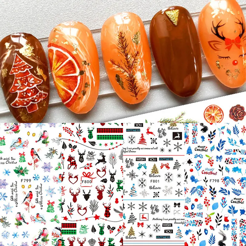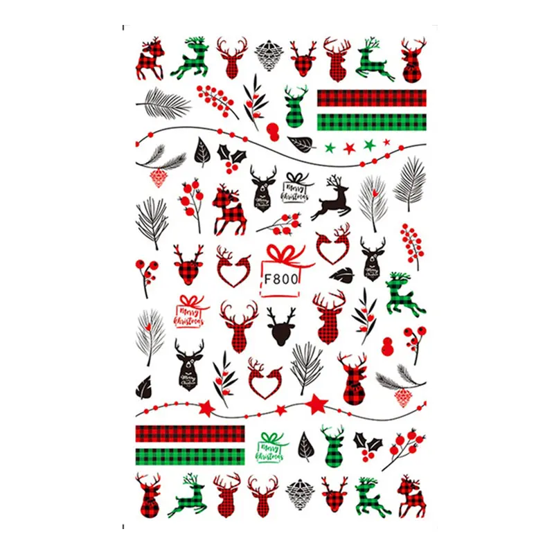 Олень Рождественское дерево Счастливого Рождества слайдер для ногтей самоклеющиеся наклейки для ногтей 3D стикер для ногтей