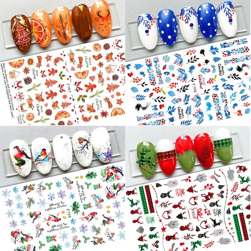 Зима 2021, яркие елки, Счастливого Рождества, слайдер для ногтей, самоклеящаяся наклейка для ногтей, 3D наклейка для ногтей, аксессуары для дизайна ногтей, наклейки