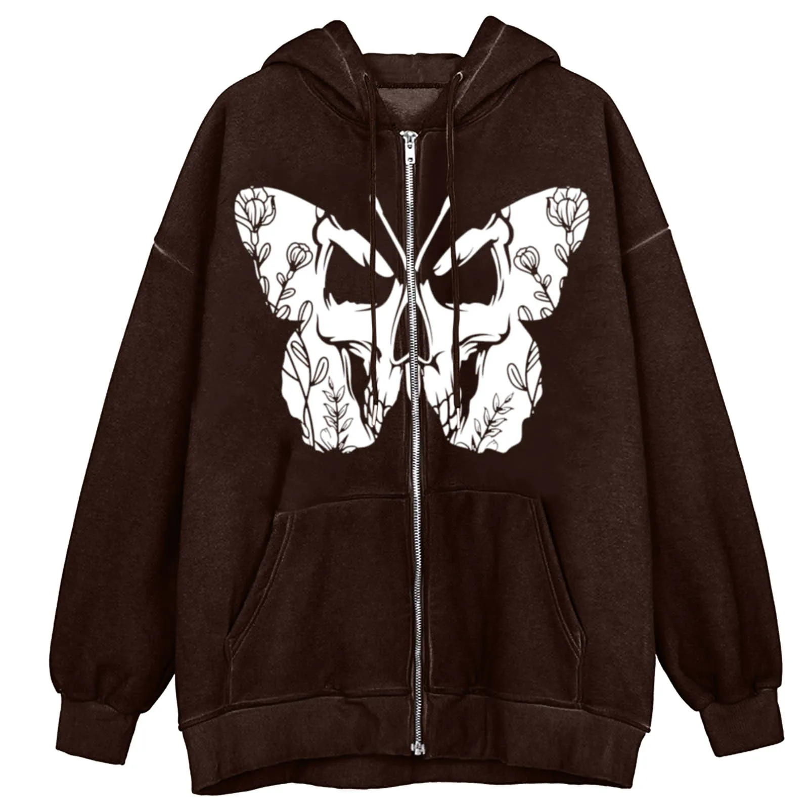 Толстовки со скелетом на молнии Стразы графические Y2k пуловеры свитшот с готическими карманами толстовки большого размера толстовки с капюшоном