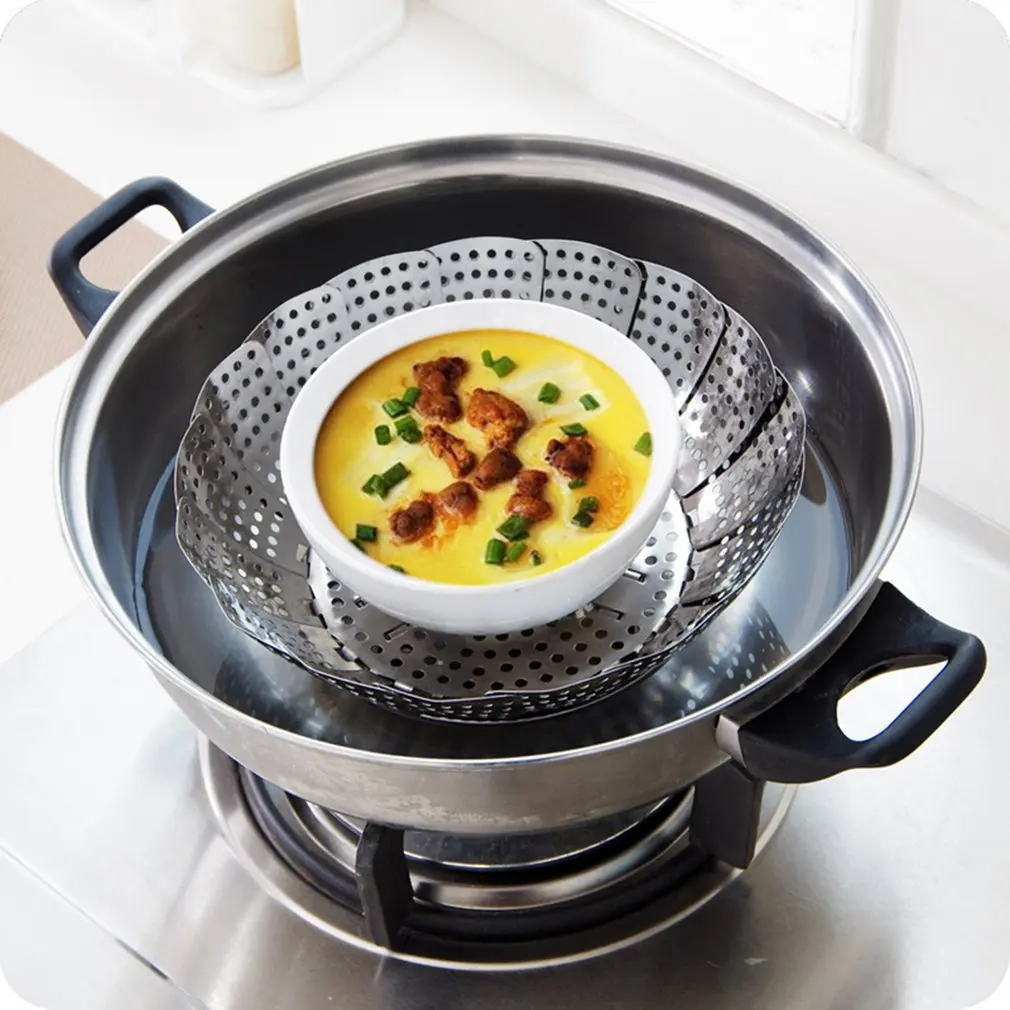1 шт., Складная сетка из нержавеющей стали, корзина для еды, овощей, яиц, тарелка, пароварка, ситечко, корзина, тарелка, расширяемый кухонный инструмент