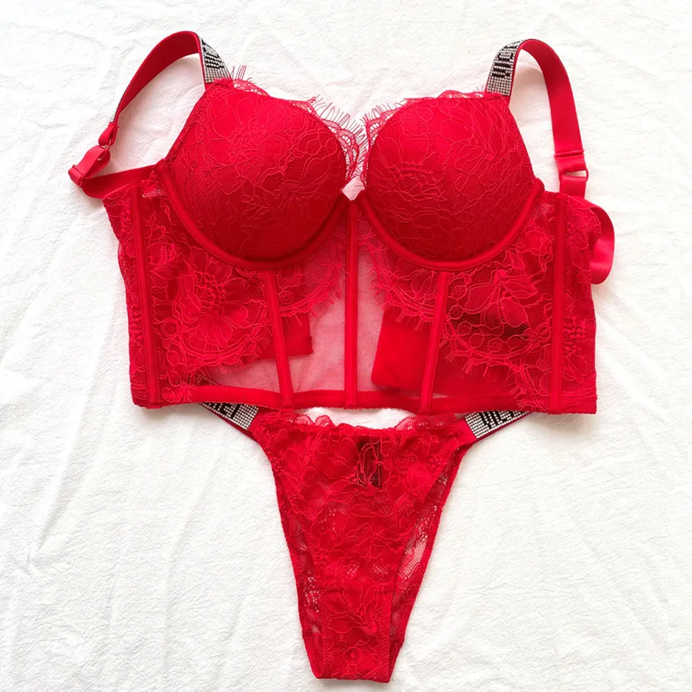Комплект женского кружевного нижнего белья с чашками пуш-ап