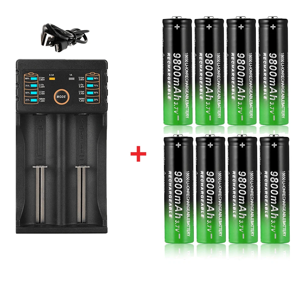 100% новый аккумулятор 18650 3,7 в 9800 мАч литий-ионный аккумулятор с зарядным устройством для светодиодного фонарика литиевая батарея + 1 зарядное устройство