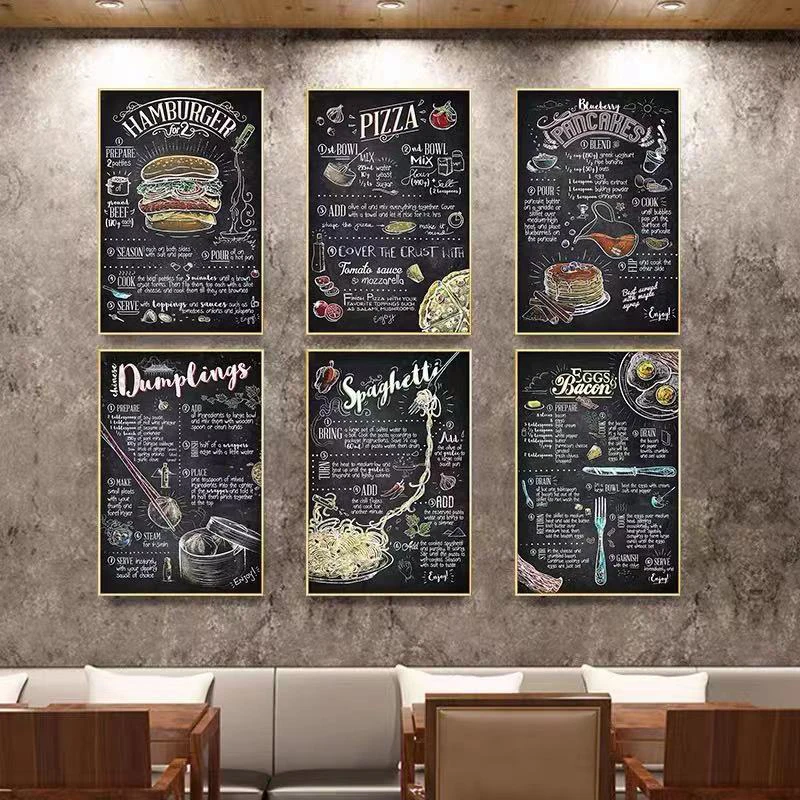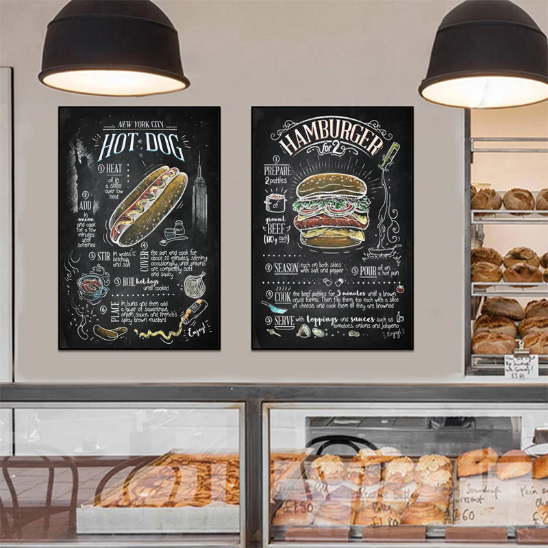 Картина для украшения ресторана, печать на холсте с изображением еды, постер для гамбургеров, картошки фри, пиццы, настенное искусство для гостиной, современное меню, домашний декор