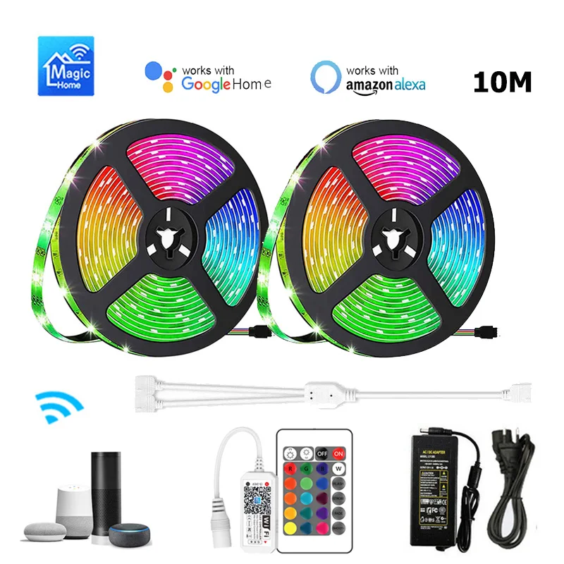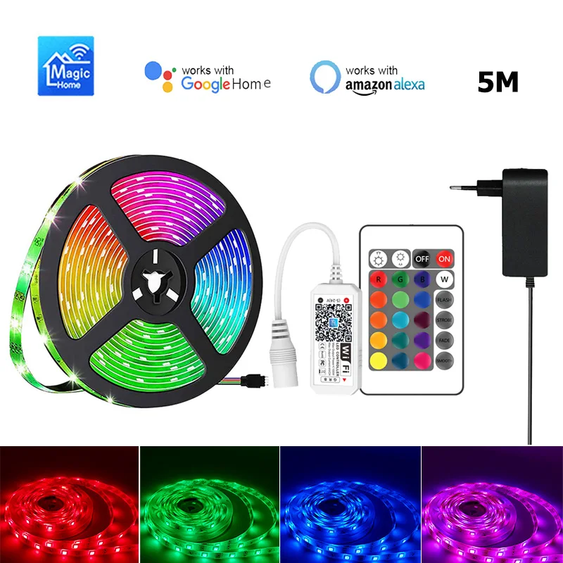 Magic Home WiFi светодиодный контроллер работает с Alexa, Google Home Голосовое управление бесплатным приложением в любом месте.