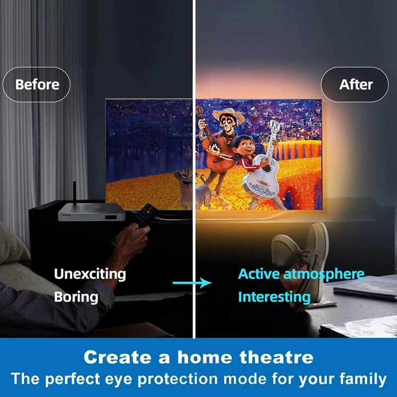 Синхронизируйте свет с фильмами, музыкой и играми, наслаждайтесь эффектом освещения, который синхронизируется с графикой изображения немедленно, и испытайте более тонкий эффект освещения атмосферы.