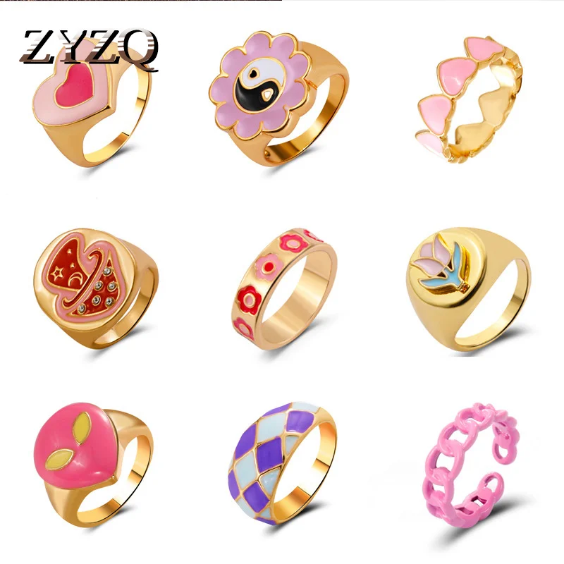 Женское Винтажное кольцо ZYZQ, Двухслойное эмалированное кольцо в форме сердца масляного цвета, геометрические украшения
