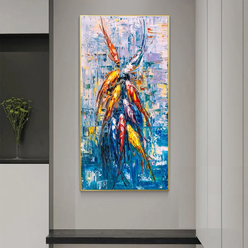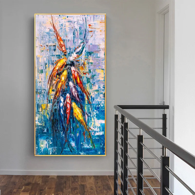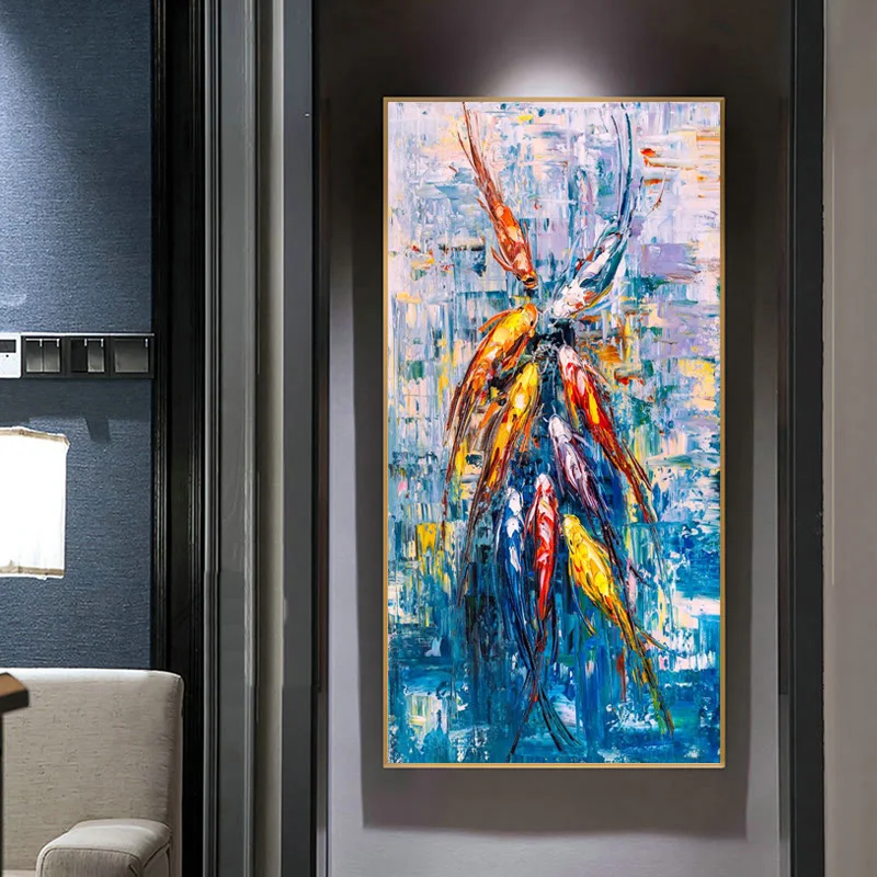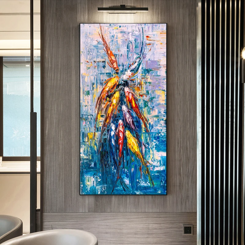 Картина маслом на холсте Koi Fish, Настенная картина для гостиной, искусство и принты, Современное украшение для дома