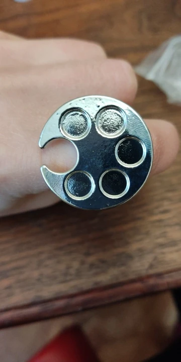 Отличное качество, кольцо плотное, можно регулировать. Выемки маловаты для замешивания покрытия на все ногти, но для рисования размер оптимальный.