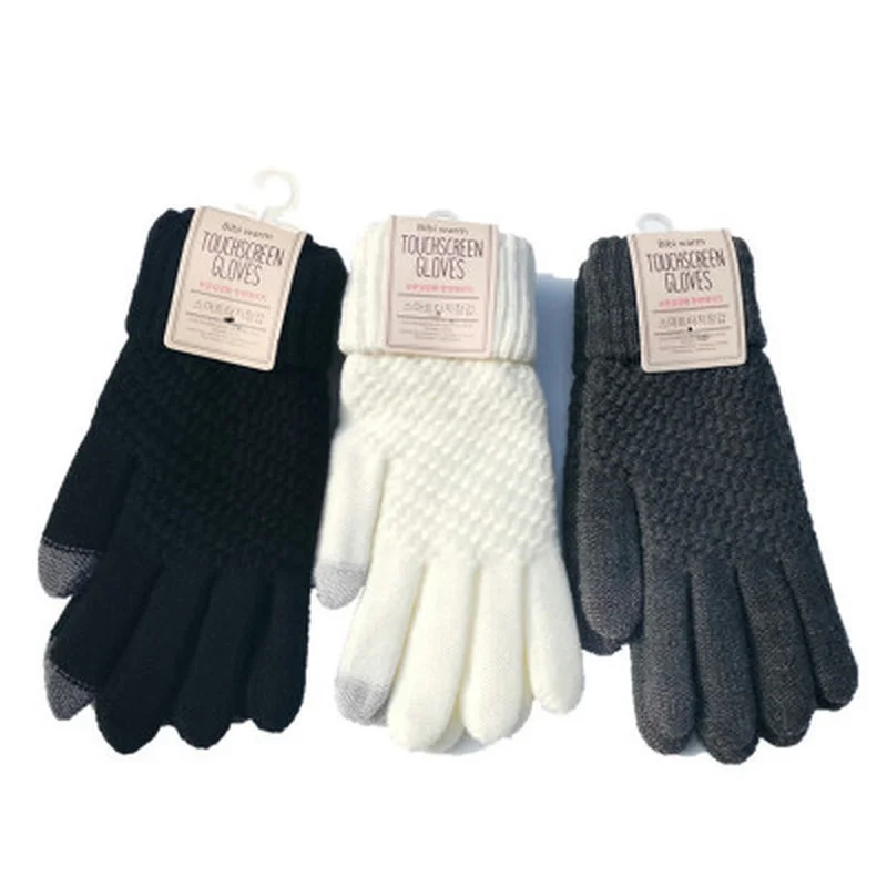 Варежки Зимние перчатки с сенсорным экраном женские теплые тянущиеся вязаные перчатки имитация шерсти женские плотные перчатки с полным пальцем