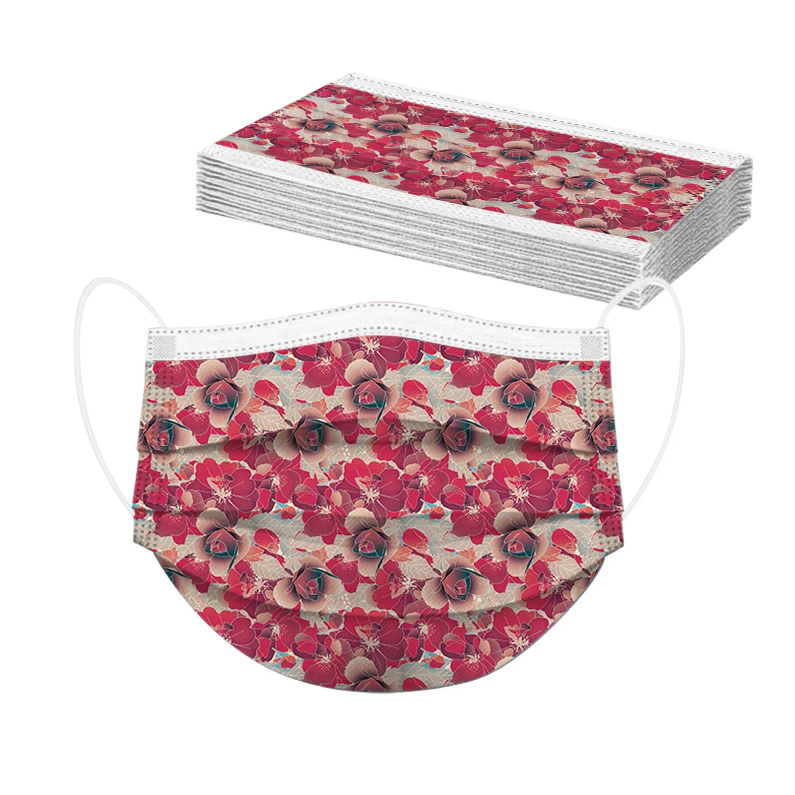 Маска для лица для взрослых 10 шт., красивые элегантные Одноразовые Дышащие 3-слойные маски с цветочным принтом