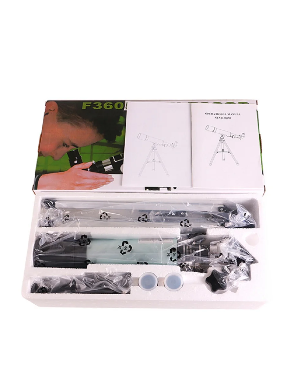 Оптическая система: Тип преломленияТелеконвертер: 1.5XДиаметр объектива: 50 ммОкуляр: h20 мм/H6 ммОптическая Диафрагма: 50 ммФокусное расстояние: 360 ммПотолочное зеркало: 90 °Фокусное размерное соотношение: 7,2Увеличение: 18X/60XШтатив из алюминия: сплав