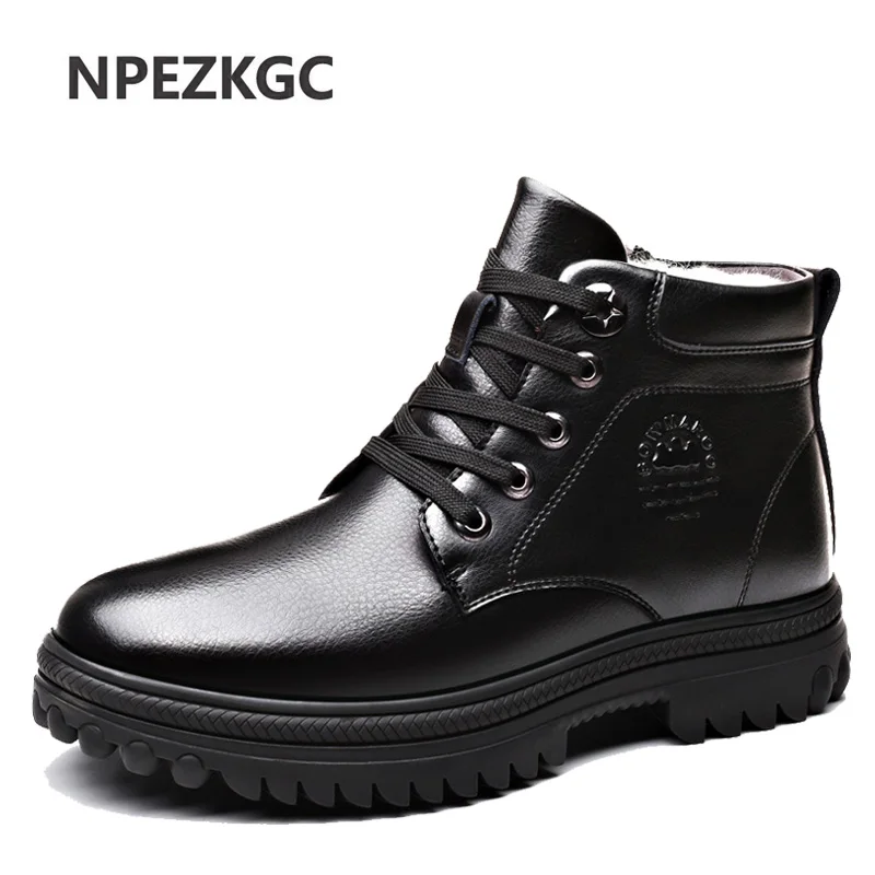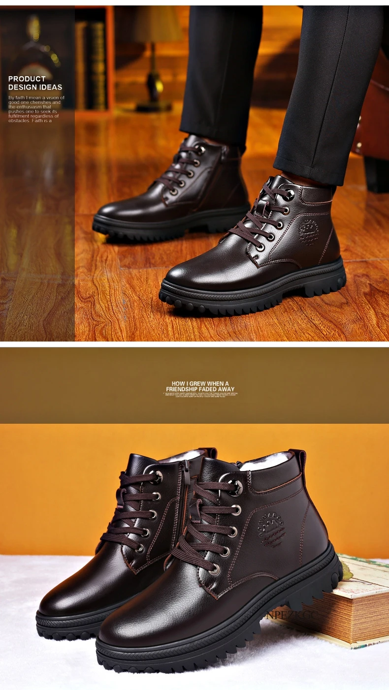Новинка 2021 года; Зимние мужские ботинки из натуральной кожи; Теплые ботильоны с натуральным мехом; Рабочая Мужская обувь; Водонепроницаемые зимние ботинки