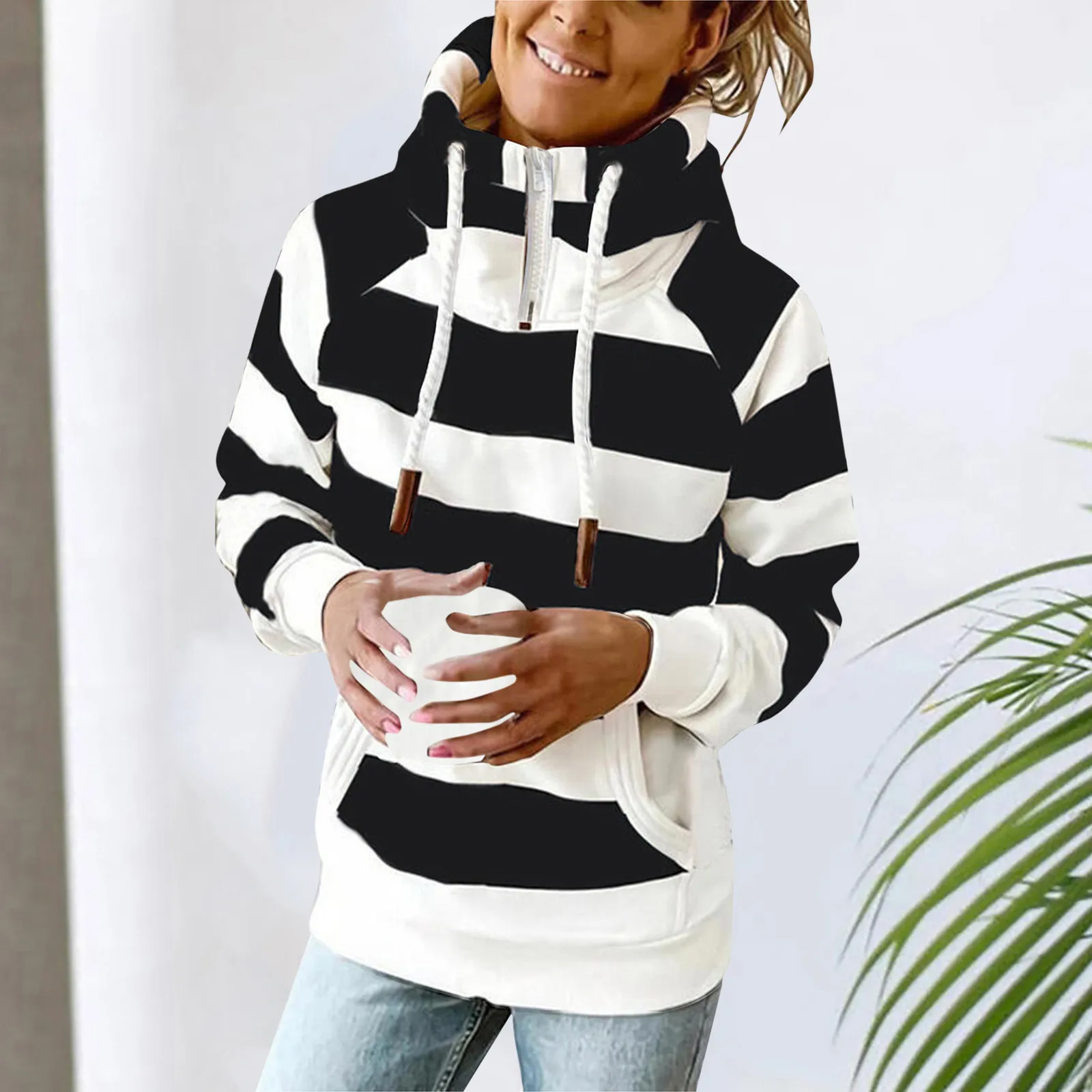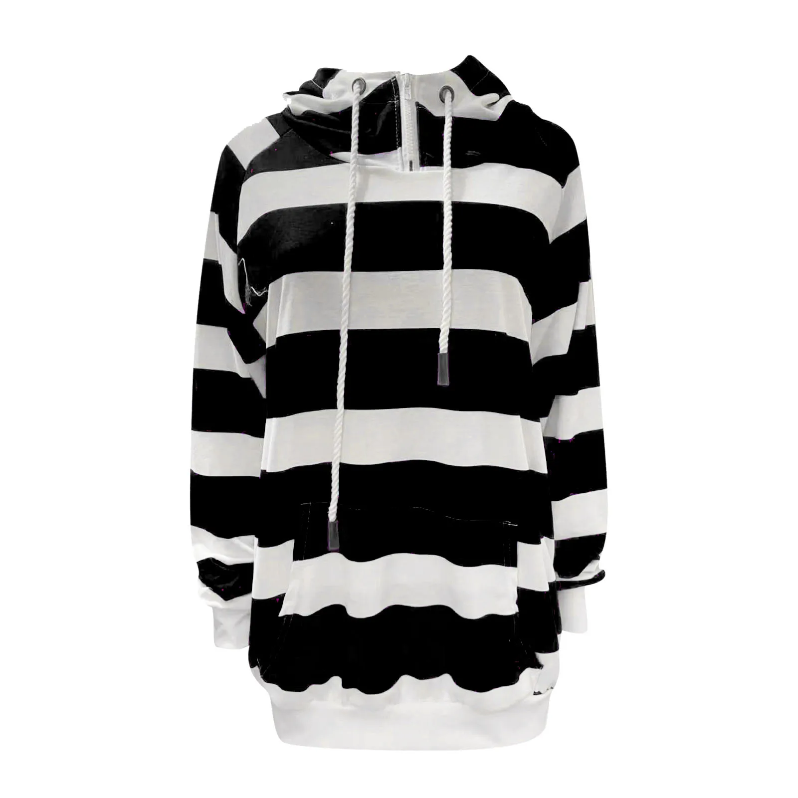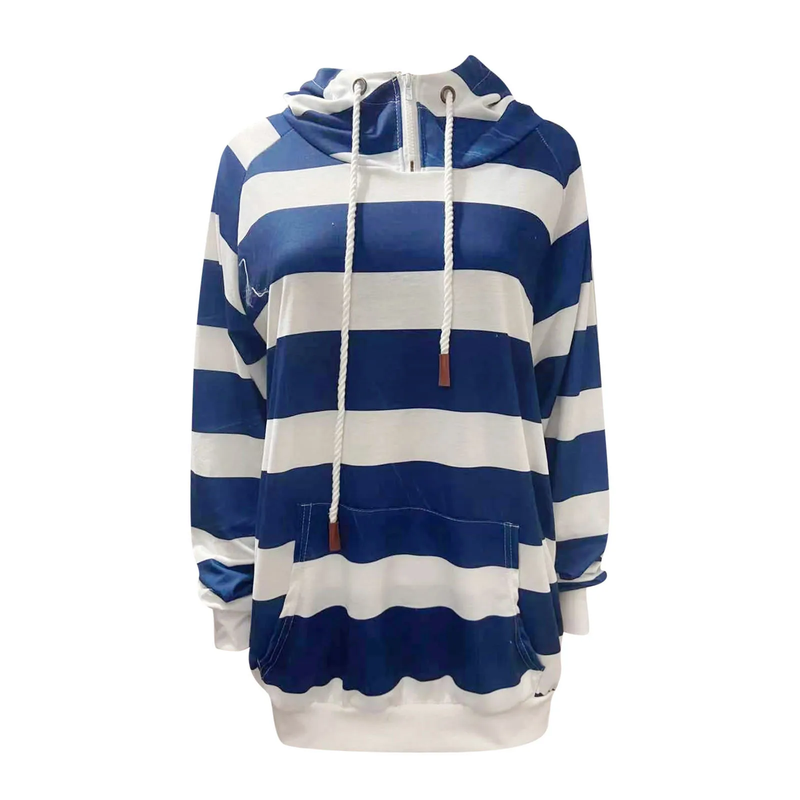 Женская толстовка в полоску с капюшоном, осенне-зимняя водолазка, теплые толстовки с длинным рукавом и принтом, женский топ на шнуровке, пуловеры # M