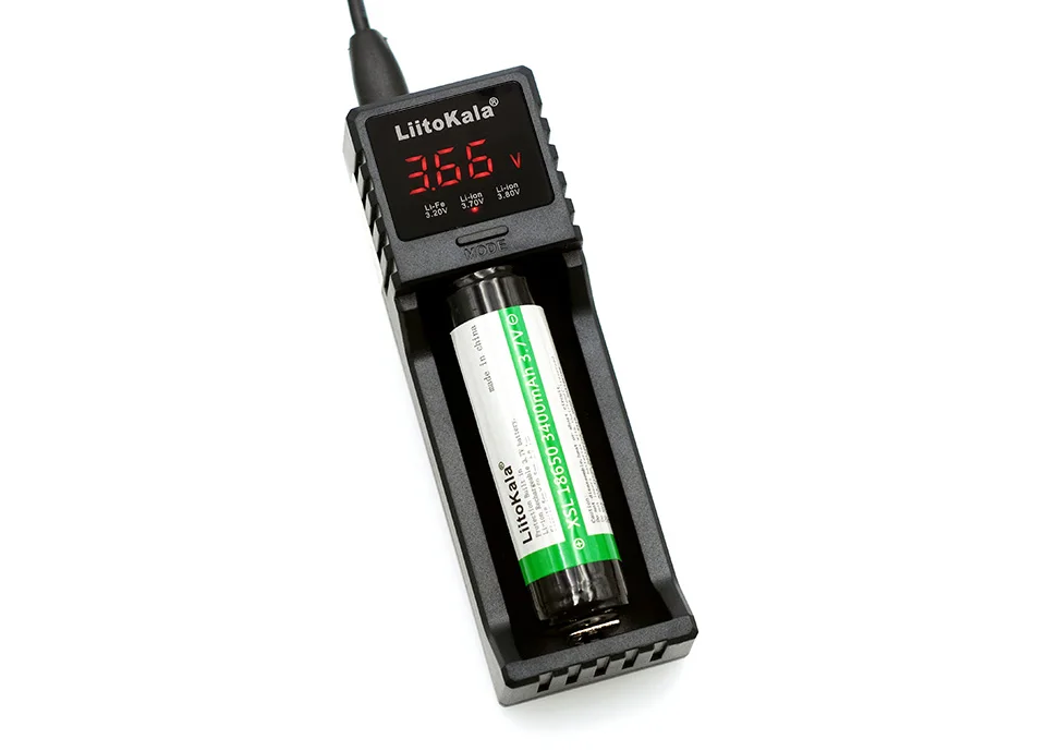 LiitoKala Lii-S1Технология еще раз инновации, автоматическое определение полярности. Не нужно различать полярность аккумулятора. До тех пор, пока батарея является перезаряжаемой батареей, которая может быть заряжена. Не беспокойтесь о обратной полярности аккумулятора. Хорошее зарядное устройство.В дополнение к автоматическому обнаружению полярности есть сильный Видимый цифровой дисплей. Визуально красиво. Функция продолжает Lii-100, очень хорошо.Технические характеристикиВход: Micro USB DC 5V / 1A (мин.)Выходное напряжение: DC 4,2 V 500mA / 1000mA для li-ionDC 4,35 V 500mA / 1000mA для IMRDC 3,65 V 500mA / 1000mA для LeFePO4DC 1,48 V 500mA / 1000mA для NiMH / NI-CdПостоянное напряжение зарядки с отключаемым током меньше 100 мАТок в режиме ожидания: не более 15 мАСовместимость с батареями:Li-ion / IMR / LiFePO4: 26650, 20700, 18650, 18490, 17700, 17500, 16340 (RCR123), 14500, 10440Ni-MH / Cd: AA, AAA, A, SC, C РазмерРазмер (мм)/Вес (г):Длина 112 мм x ширина 37 мм x высота 32 мм45 граммов (зарядное устройство) + 17 граммов (USB кабель) включены в поставку