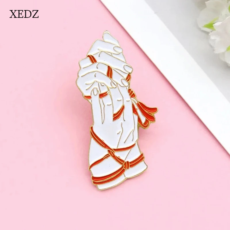 XEDZ 2021 новая мультяшная красная лента ручная эмалированная подвеска влюбленные руки белая Художественная Скульптура значок ювелирные изделия подарок
