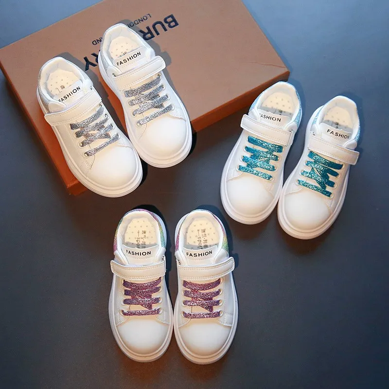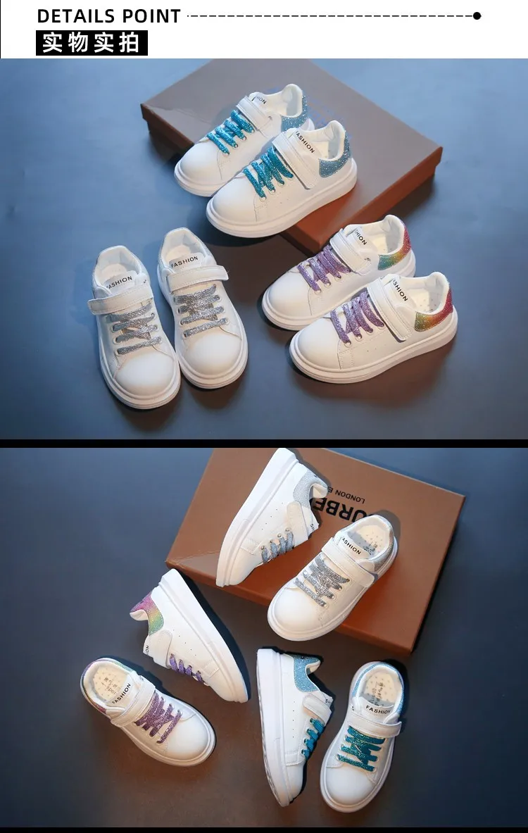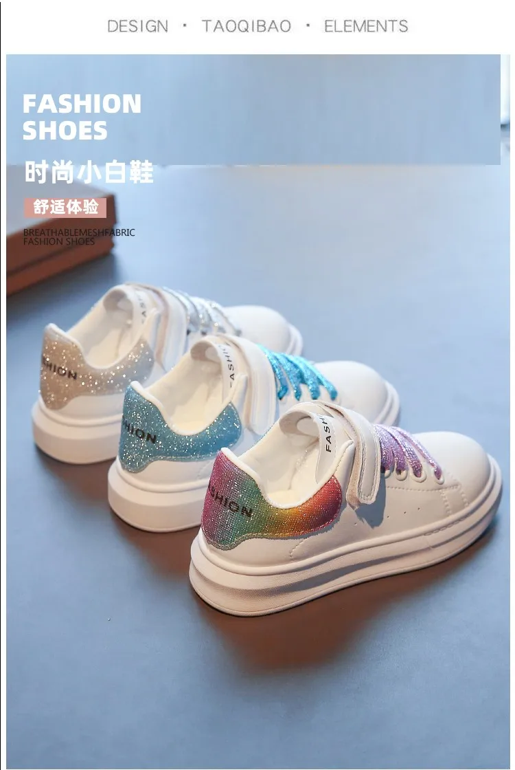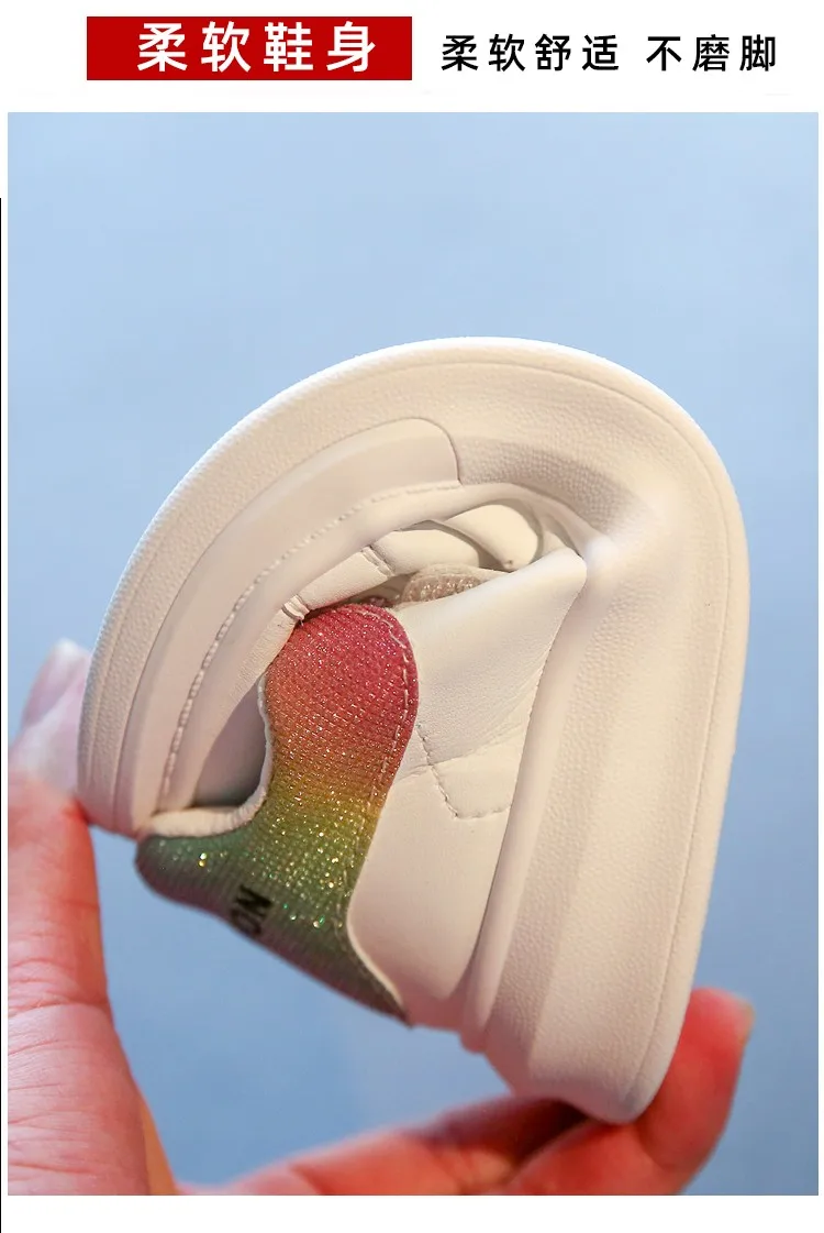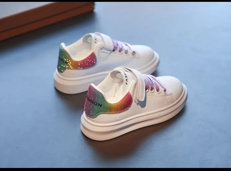 Кроссовки Детские с радужными блестками, модная мягкая дышащая обувь для скейтборда, для мальчиков и девочек, повседневные, Размеры 26-37, осень