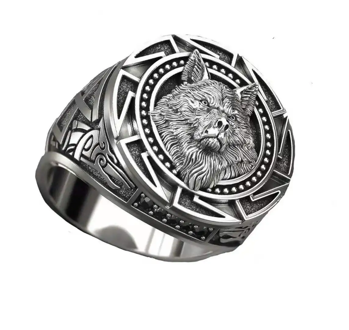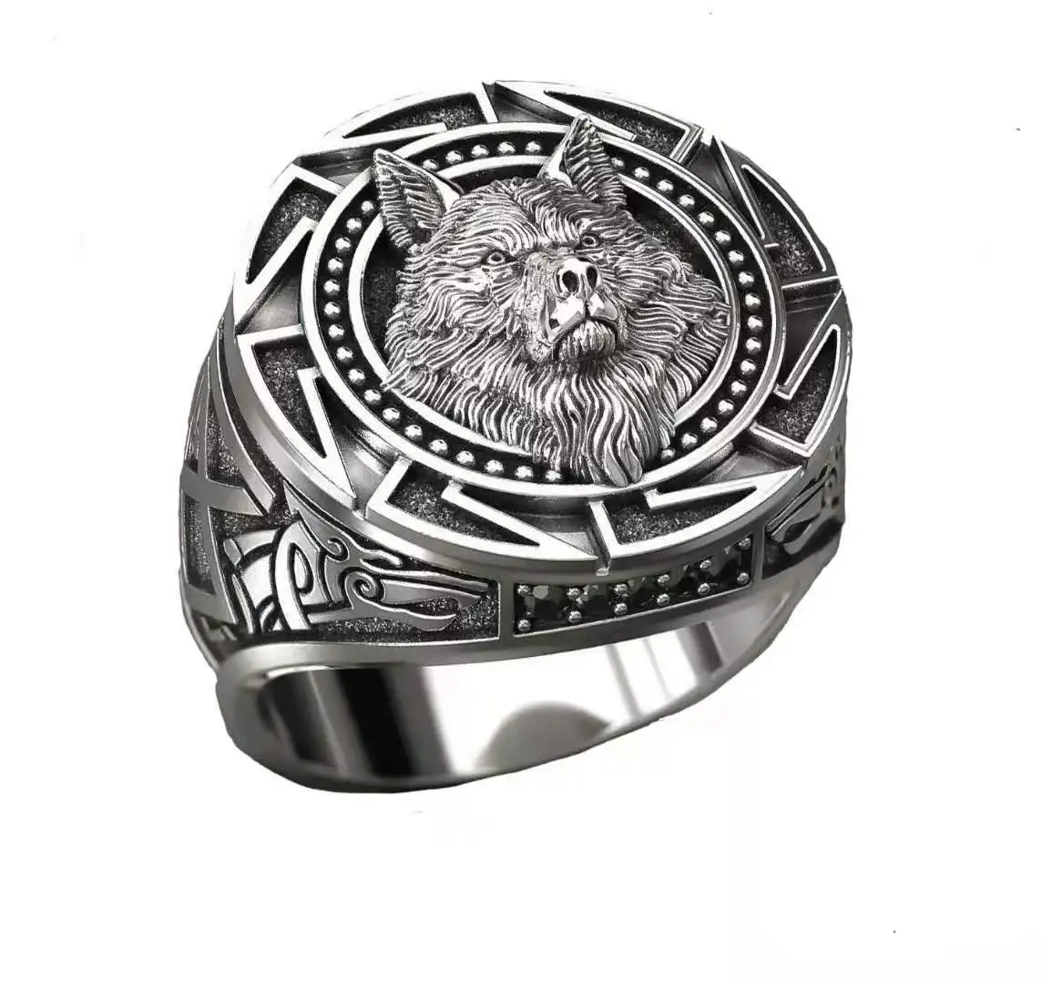 Мужское винтажное серебряное кольцо Тотем волка в скандинавской миф...
