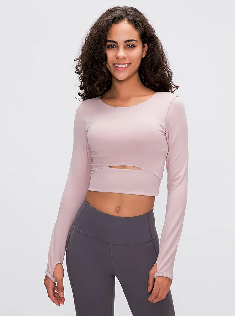 long sleeve top Yoga t-shirtWomen's short outdoor running slim yoga top