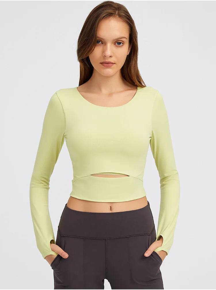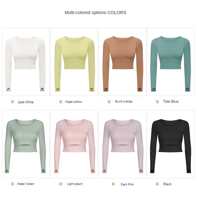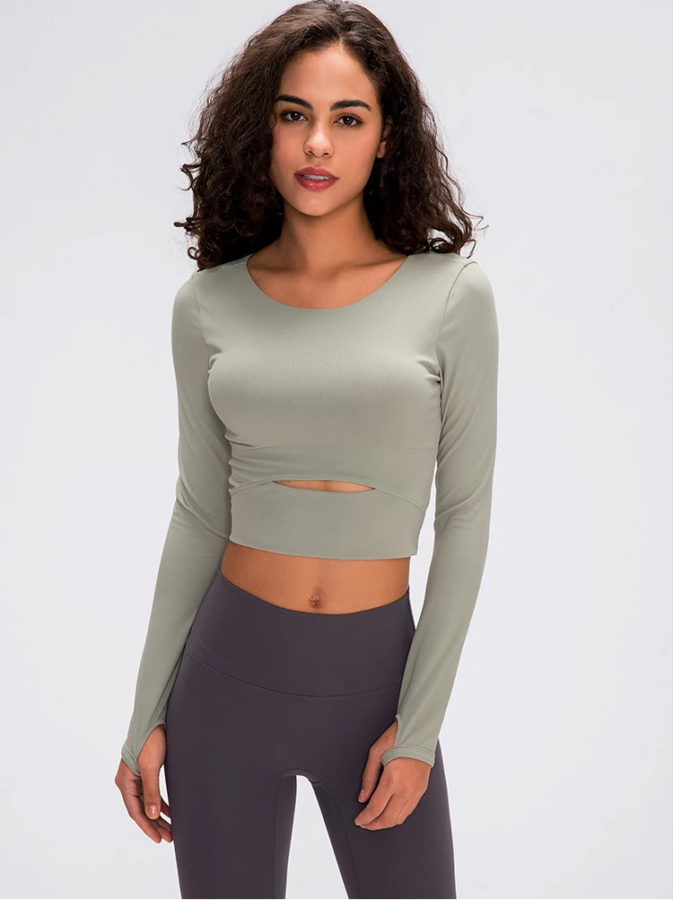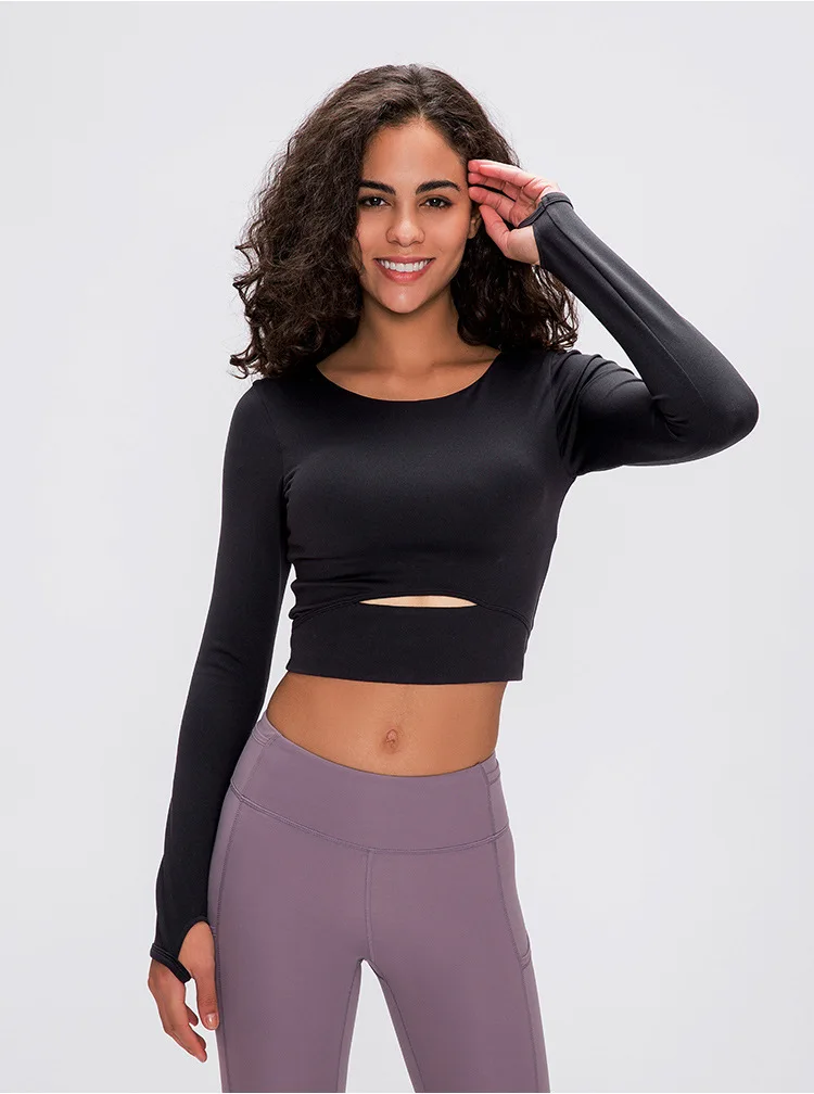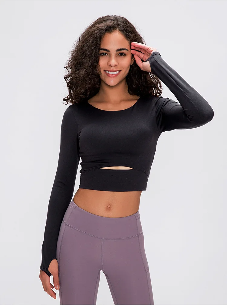 Women's long sleeve topShort sexy running fitness clothes with exposed waist