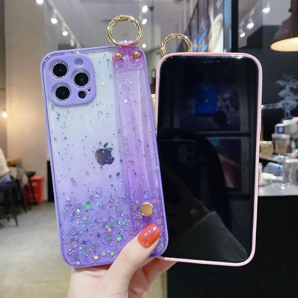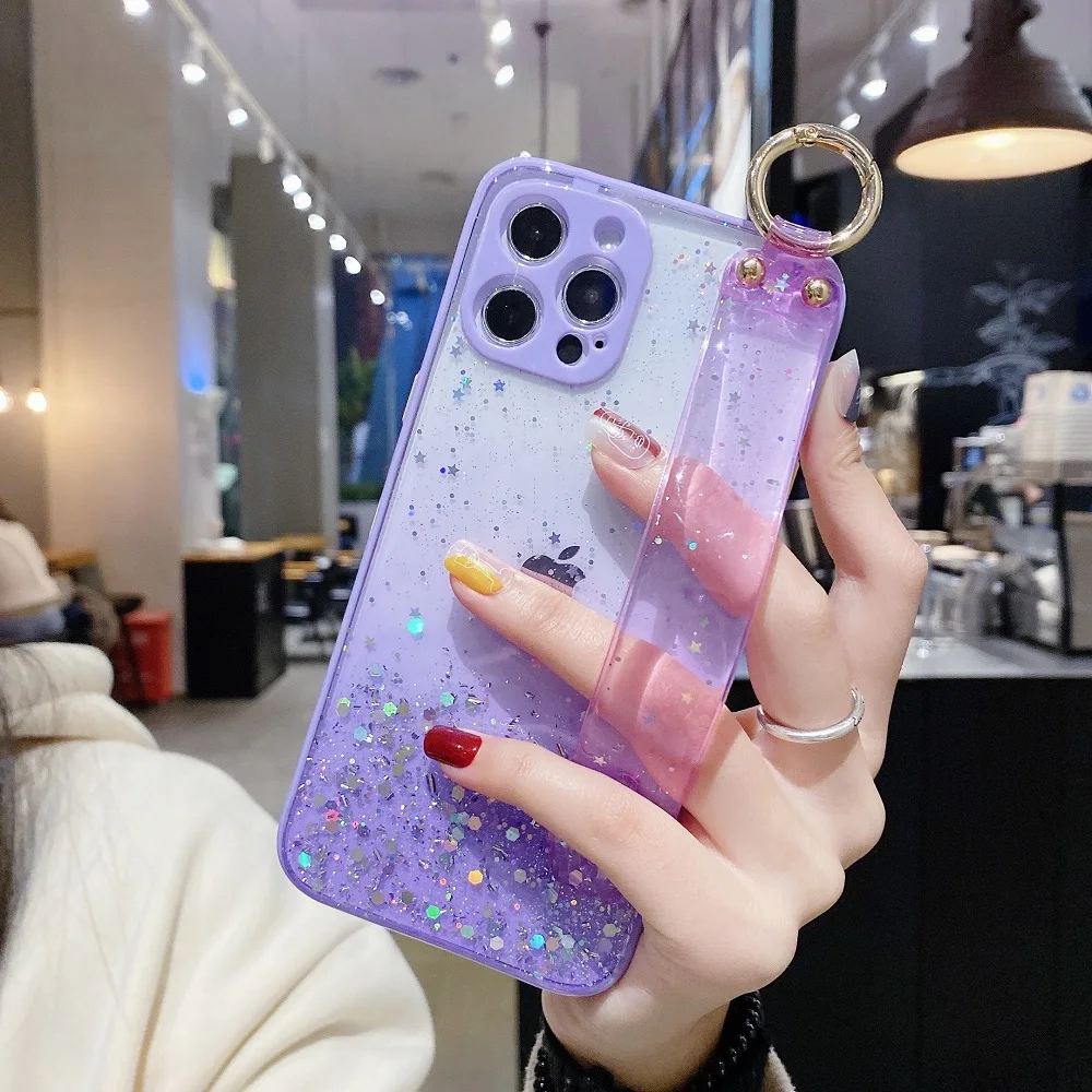 Силиконовый чехол с держателем браслета для Xiaomi Redmi Note 9, 10, 8 Pro Max, 9A, 9C, NFC, 9T, 9S, 10S, Прозрачный блестящий чехол для объектива