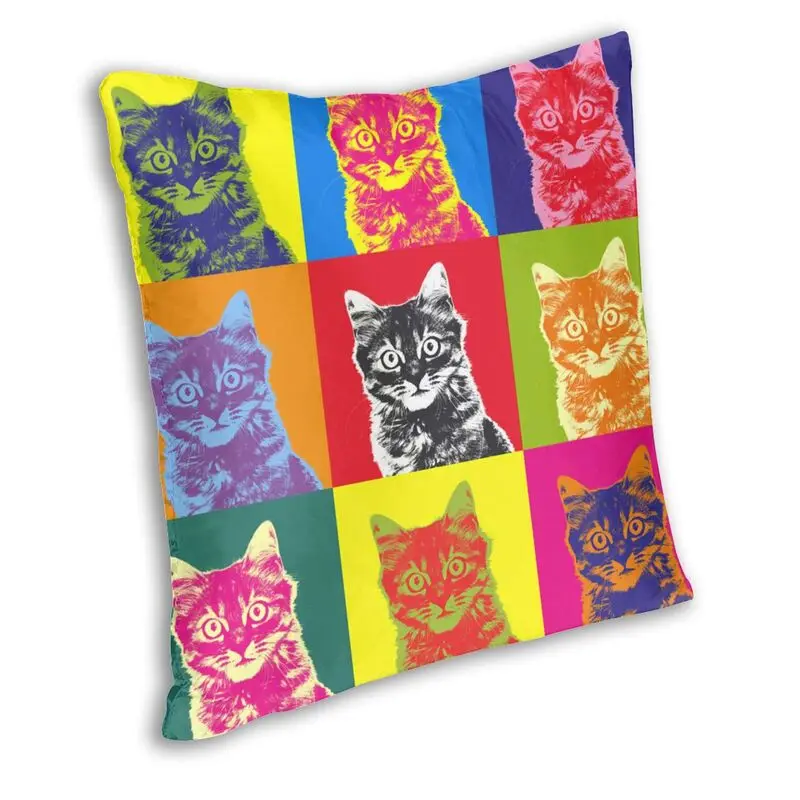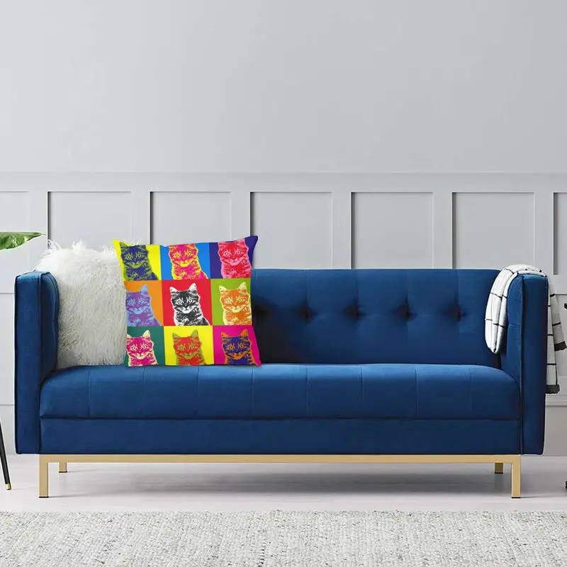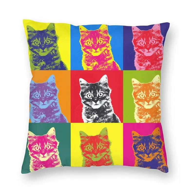 Наволочка на диванную подушку с надписью Andy Warhol для гостиной, украшение для дома, портреты в стиле поп-арт, кошки, Китти, Наволочка на диванную подушку, наволочка