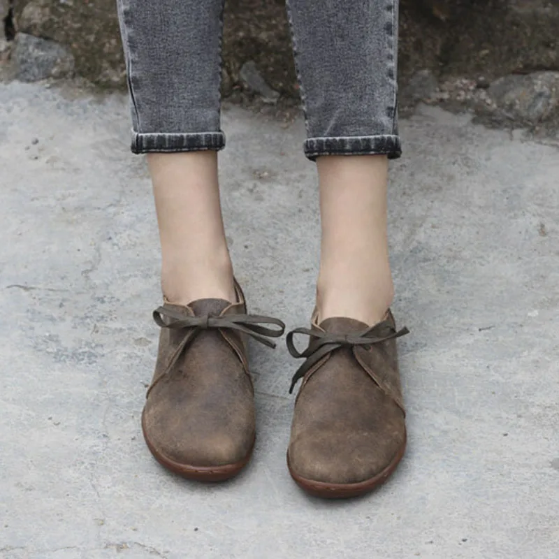 Женские ботильоны из натуральной кожи, с круглым носком, на шнуровке