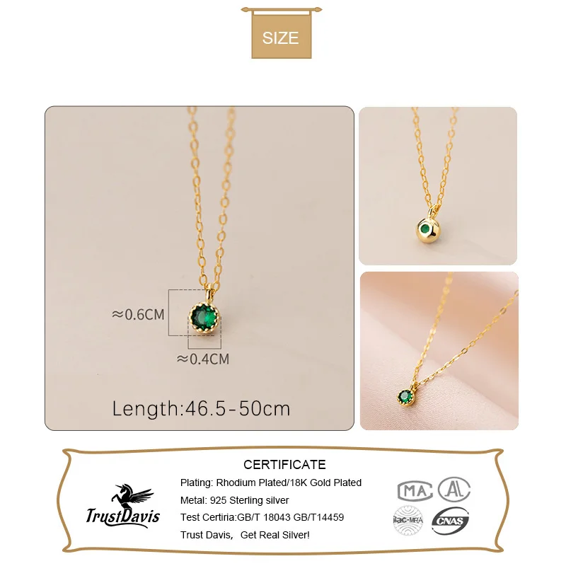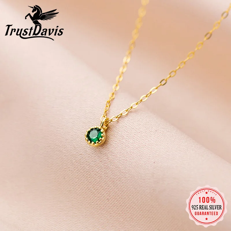 Trustdavis Настоящее серебро 925 пробы модное Золотое круглое зеленое циркониевое ожерелье для женщин ювелирные изделия для свадебной вечеринки подарок DA2399