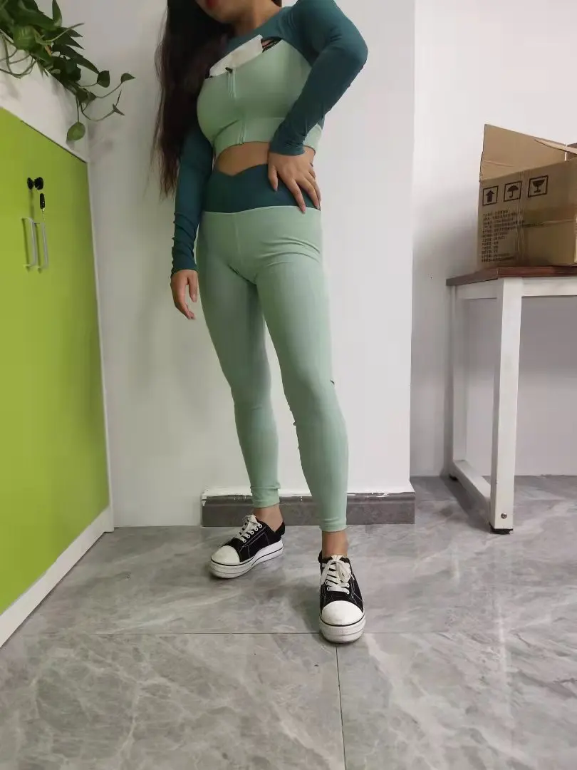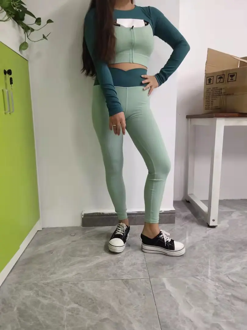 Женский комплект для йоги, сексуальные леггинсы на молнии с длинным...