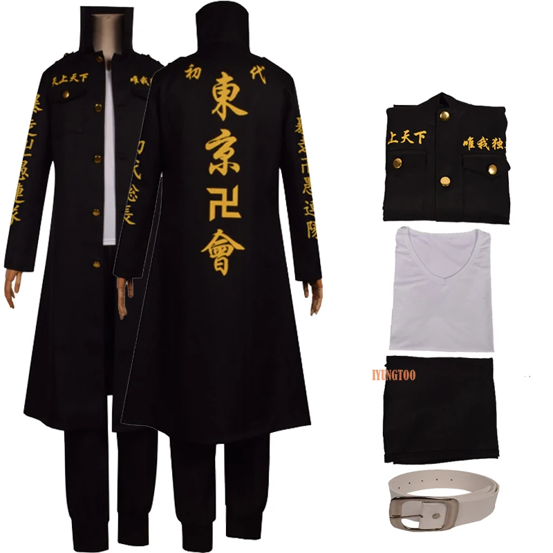 5 шт. Аниме Tokyo Revengers Косплей Sano Manjiro униформа косплей костюм Tokyo Manji Gang накидка футболка брюки пояс наряды парики
