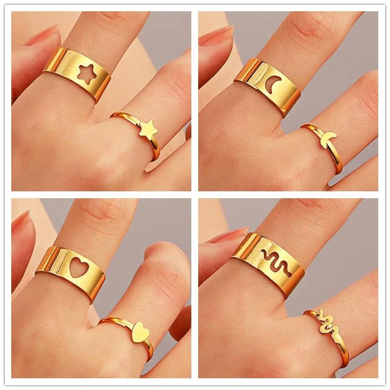 Парные кольца в виде сердца, Луны, звезды, Дельфина, набор золотого...