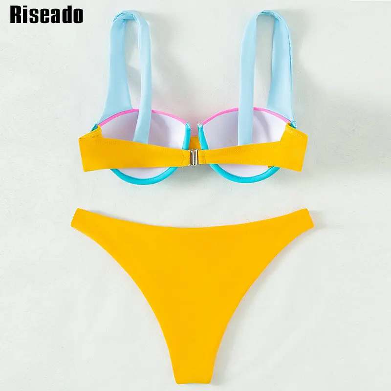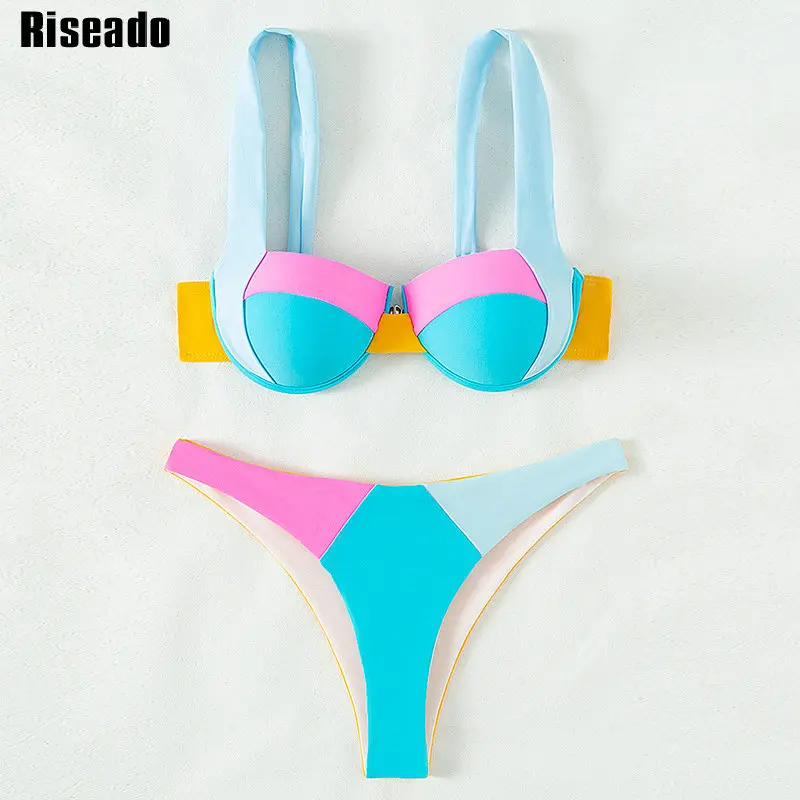 Riseado сексуальное бикини пуш-ап с цветными блоками женский купальник 2022 на косточках купальник стринги Бразильский бикини набор женский купальный костюм