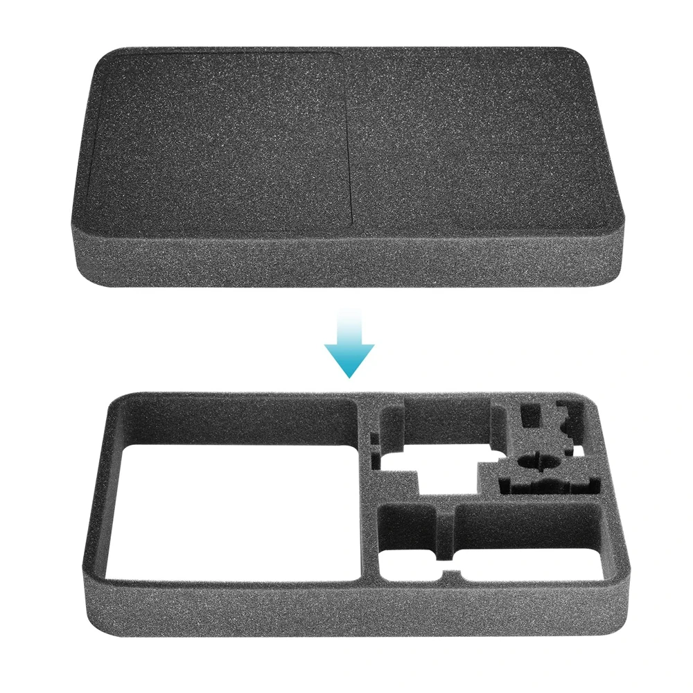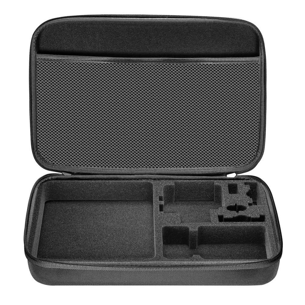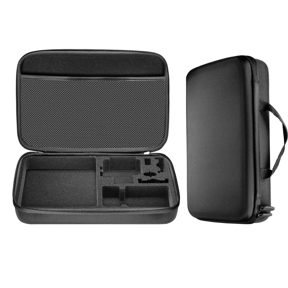 Особенности:1. Жесткий материал EVA с противоударными внутренними вырезами из пенопласта, предназначен для различных аксессуаров.2, уникальный и специально разработанный чехол для хранения GoPro и других аксессуаров экшн-камеры с губкой для защиты ваших камер, обеспечивает безопасность, защиту и организованность ваших GoPro и аксессуаров.3. Храните аккумулятор, зарядное устройство, набор аккумуляторов и вашу экшн-камеру, с сетчатым мешком вверх ногами, чтобы удерживать другие маленькие аксессуары.4, легкий, мягкий и компактный, идеально подходит в качестве защитного футляра для путешествий, не оставляет пыли и защищает камеру внутри этого чехла.5, прочные и прочные двойные молнии удобно использовать и защитить камеру от скольжения.Описание:Размер (Д * Ш * В)Большая сумка 32*21*6,5 см