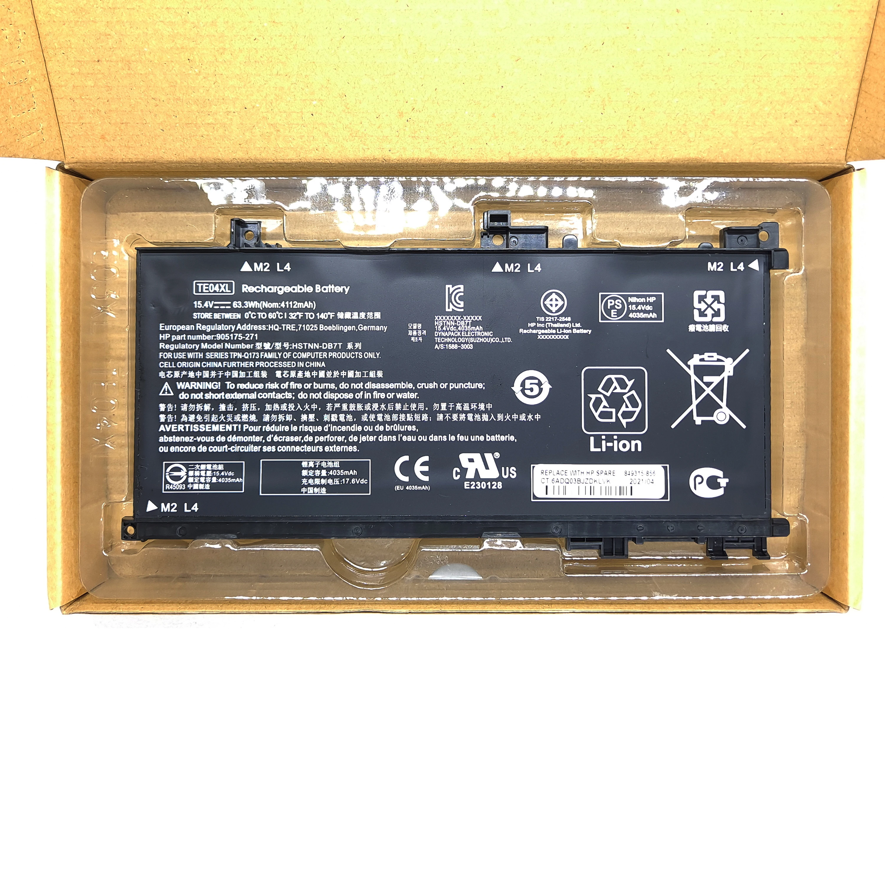 Оригинальный оригинальный телефон TE04XL TEO4XL 905175-271 Стандартный Аккумулятор для ноутбука HP Omen 15-AX200 Pavilion 15-BC200 15t-bc200