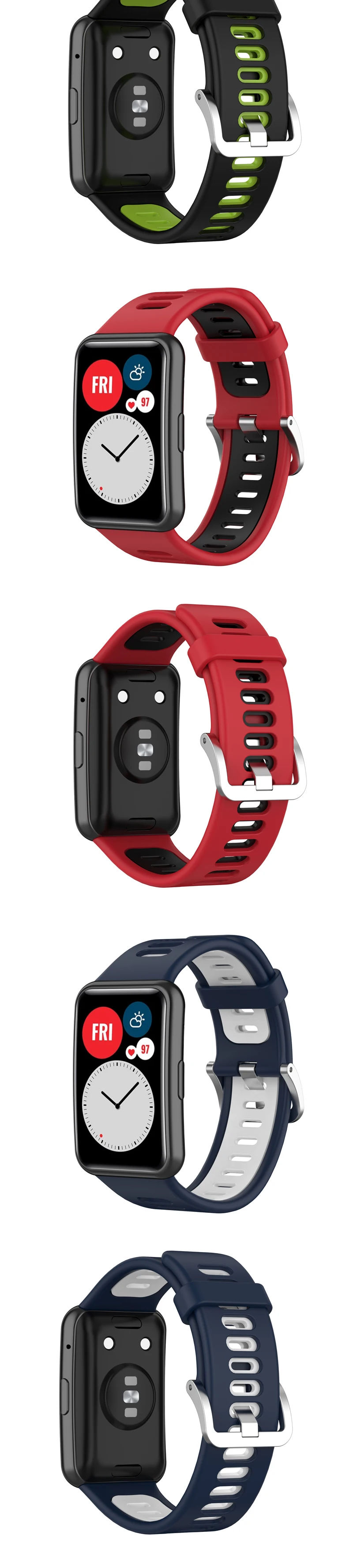Силиконовый ремешок для Huawei Watch Fit, двухцветный водонепроница...