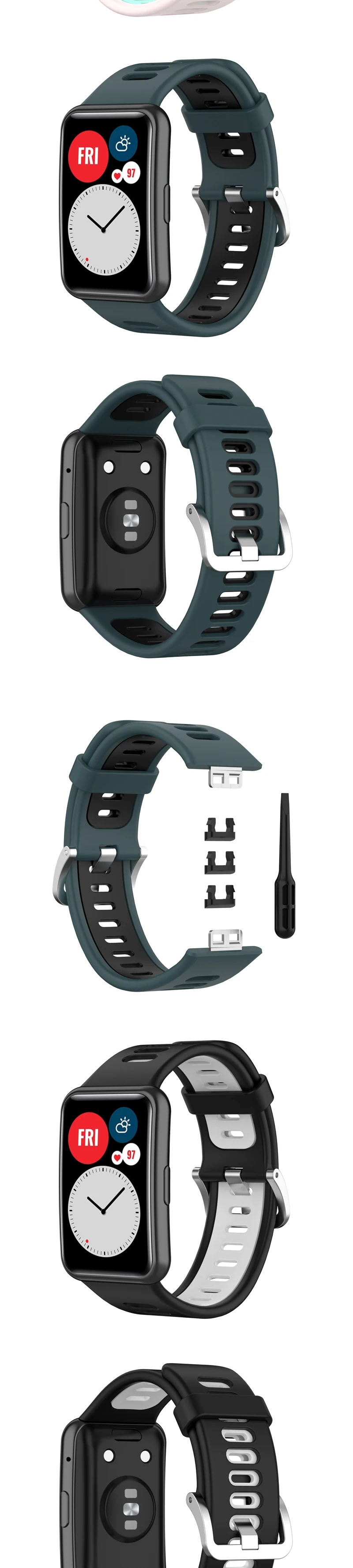 Ремешок силиконовый для смарт-часов Huawei, цветной мягкий резиновый браслет с аксессуарами для инструментов