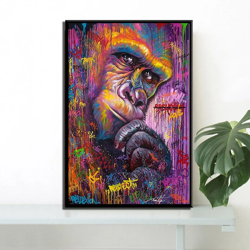Современное граффити, настенная живопись, абстрактные плакаты и принты орангутана разноцветные обезьянки, настенные картины для гостиной