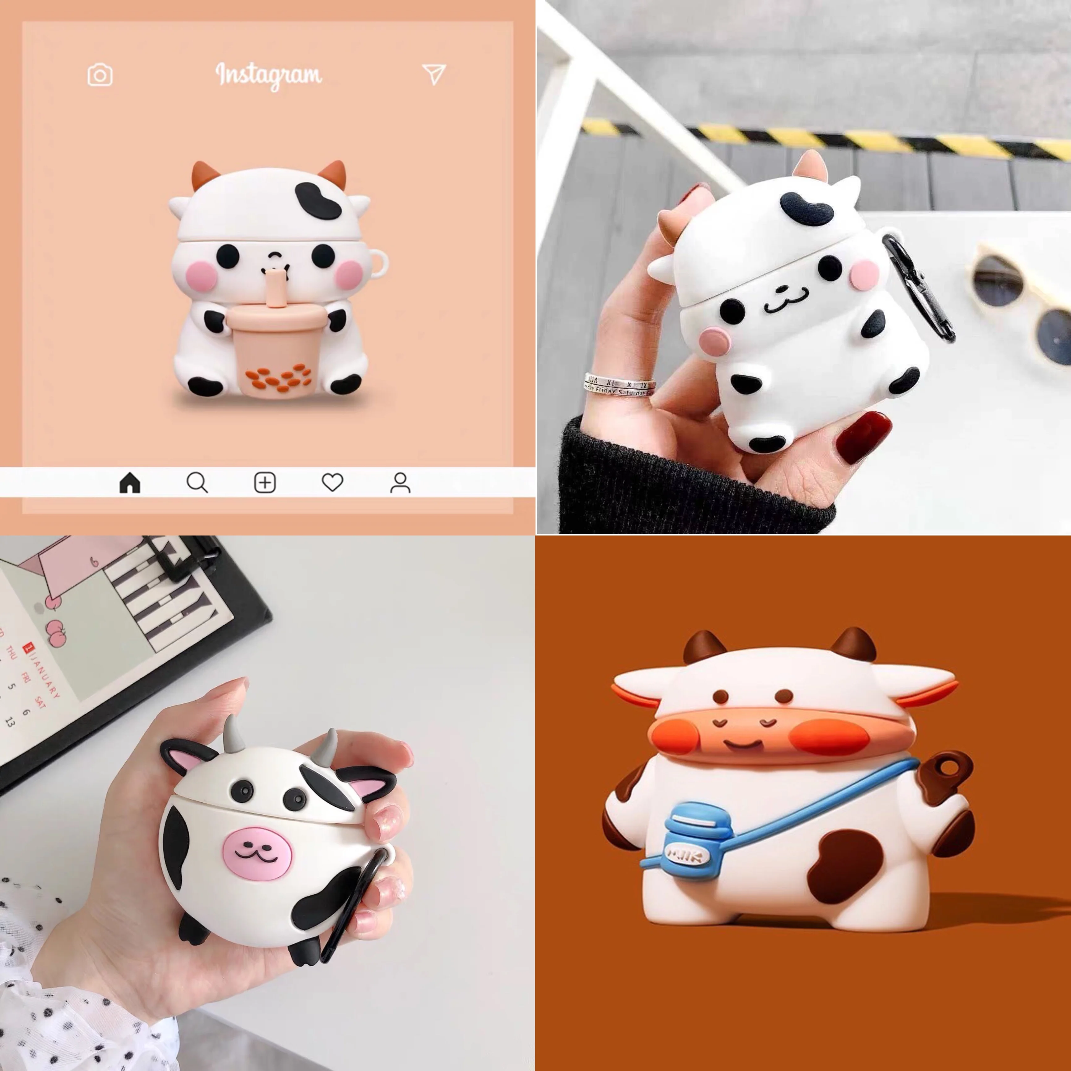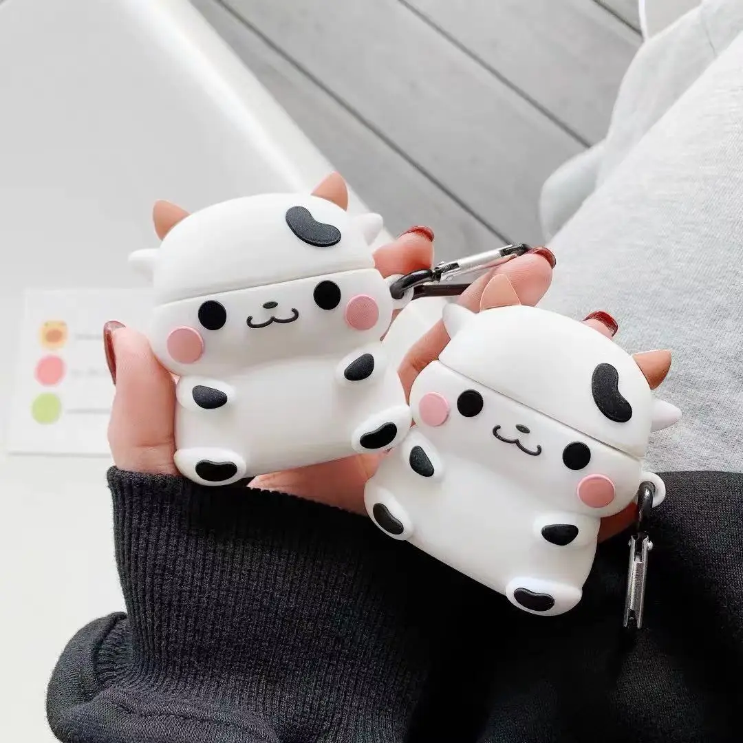 Чехол для AirPods 1 2 Pro, милый мультяшный 3D-чехол с животными, корова, скот, молоко, чай, коробка, мягкий силиконовый беспроводной Bluetooth-наушник, защитный чехол