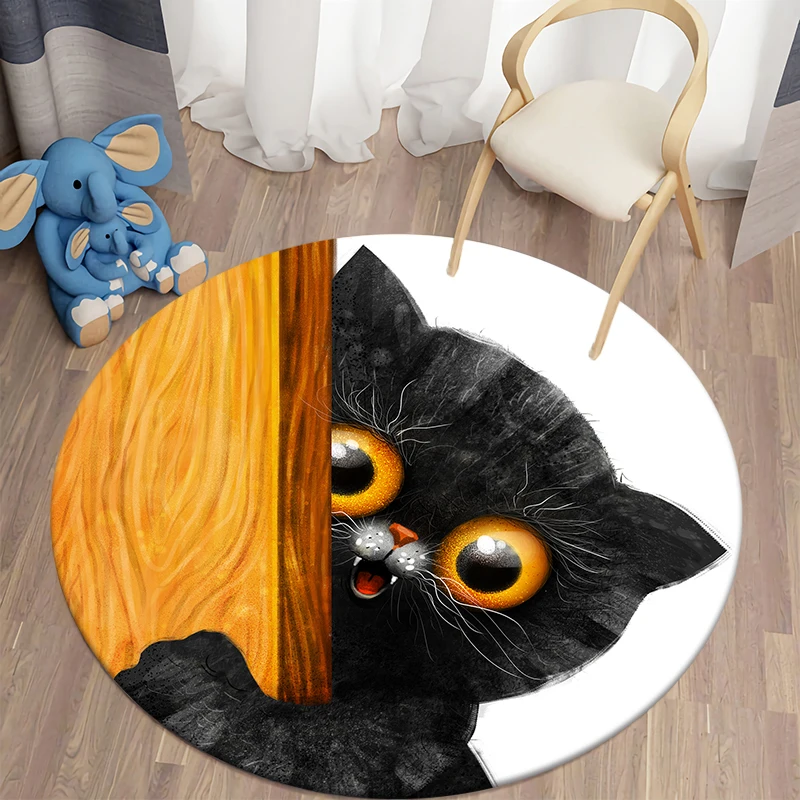 Круглый ковер в виде черной кошки для гостиной, Детский ковер, напольный коврик для детской комнаты, ковер для спальни