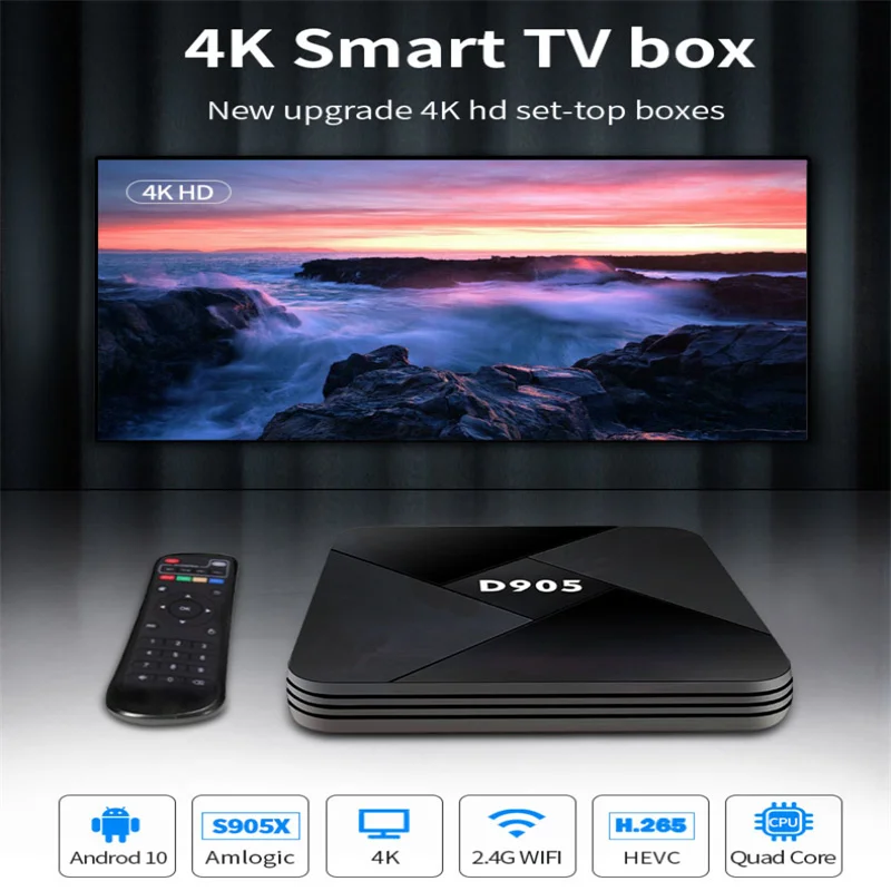 Приставка Смарт-ТВ D905, Android 10,0, 4 + 32 ГБ, Wi-Fi, 2,4G, 4K