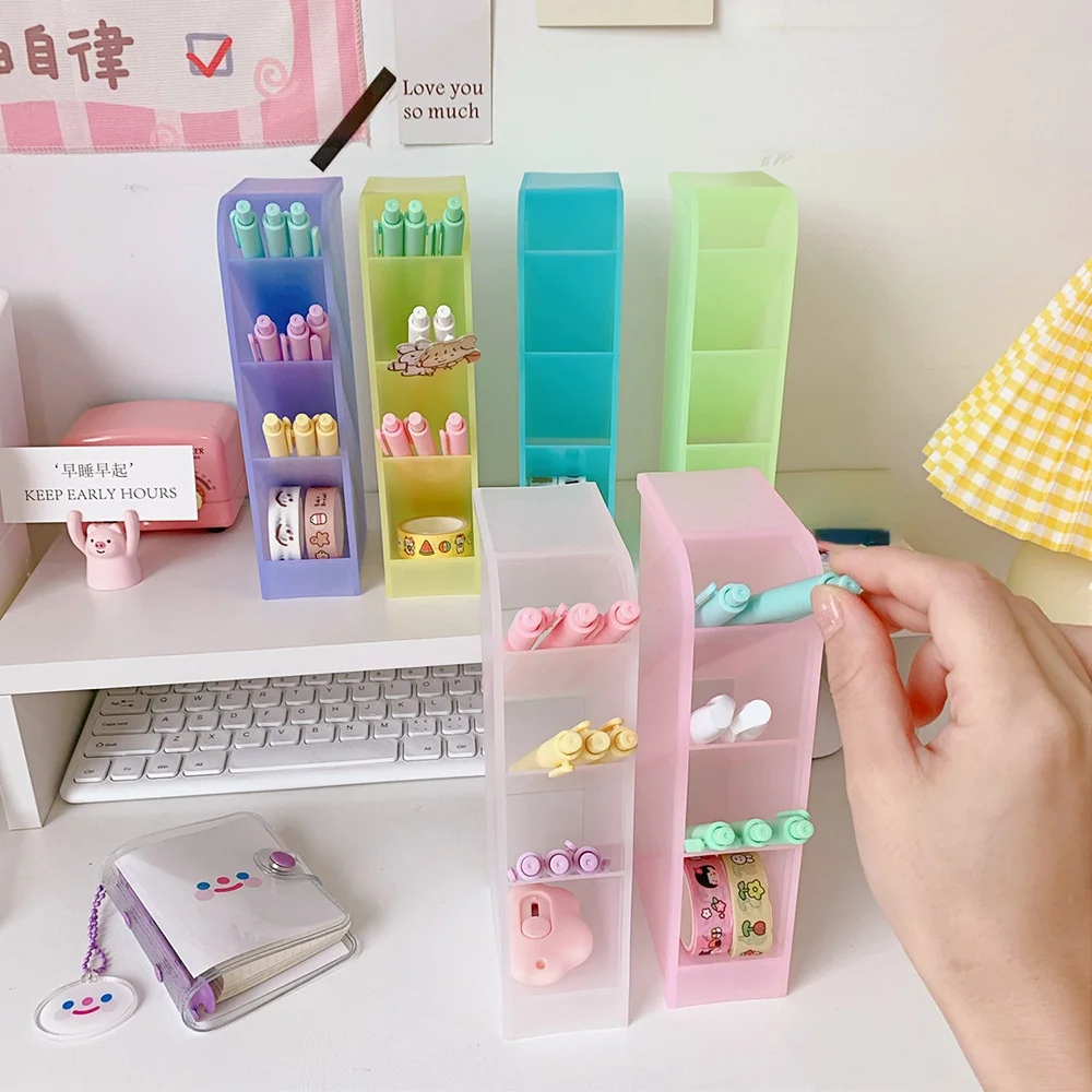 Милый Настольный ящик для хранения в Корейском стиле Ins, простой многофункциональный четырехсеточный диагональный держатель для ручек, коробка для хранения косметических кистей и помад