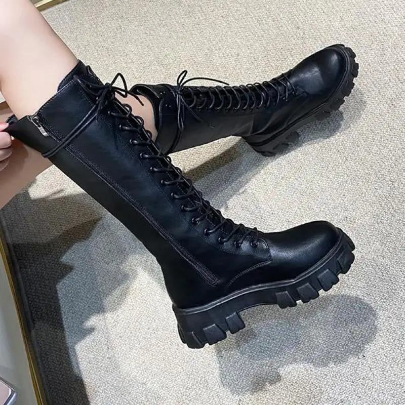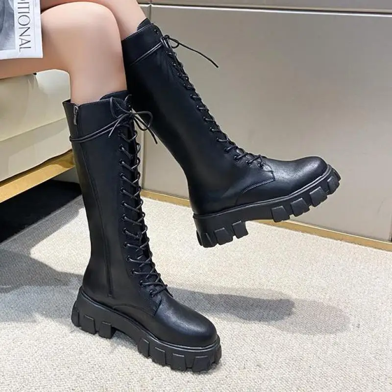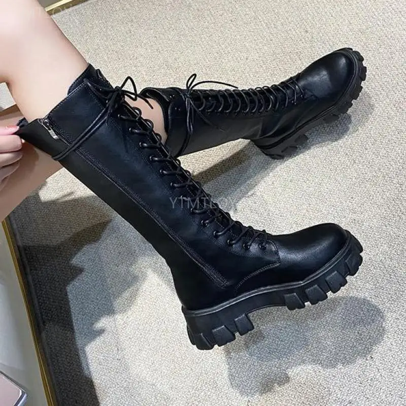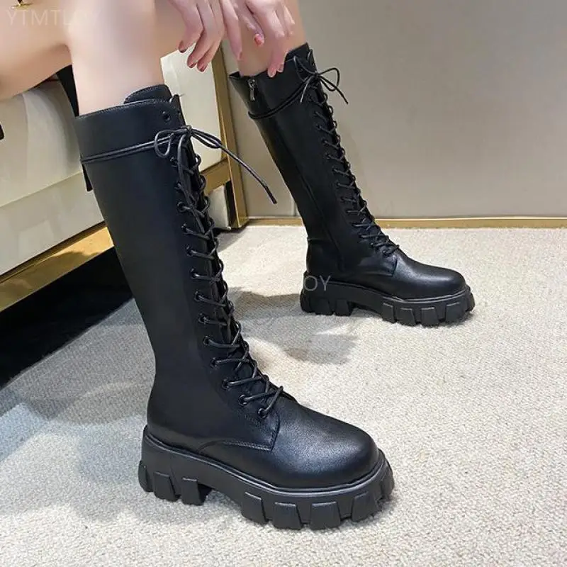 Зимние плюшевые сапоги до колена, женские черные кожаные боевые сапоги в стиле панк 2022, теплая меховая длинная платформа Ytmtloy Botines De Mujer Sexy