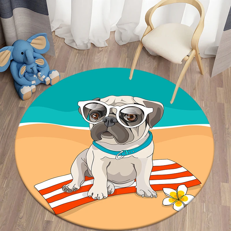 Круглые коврики с изображением собаки для детской комнаты, гостиной, мягкие фланелевые коврики с изображением щенка для пола, коврик для спальни, коврик для детей