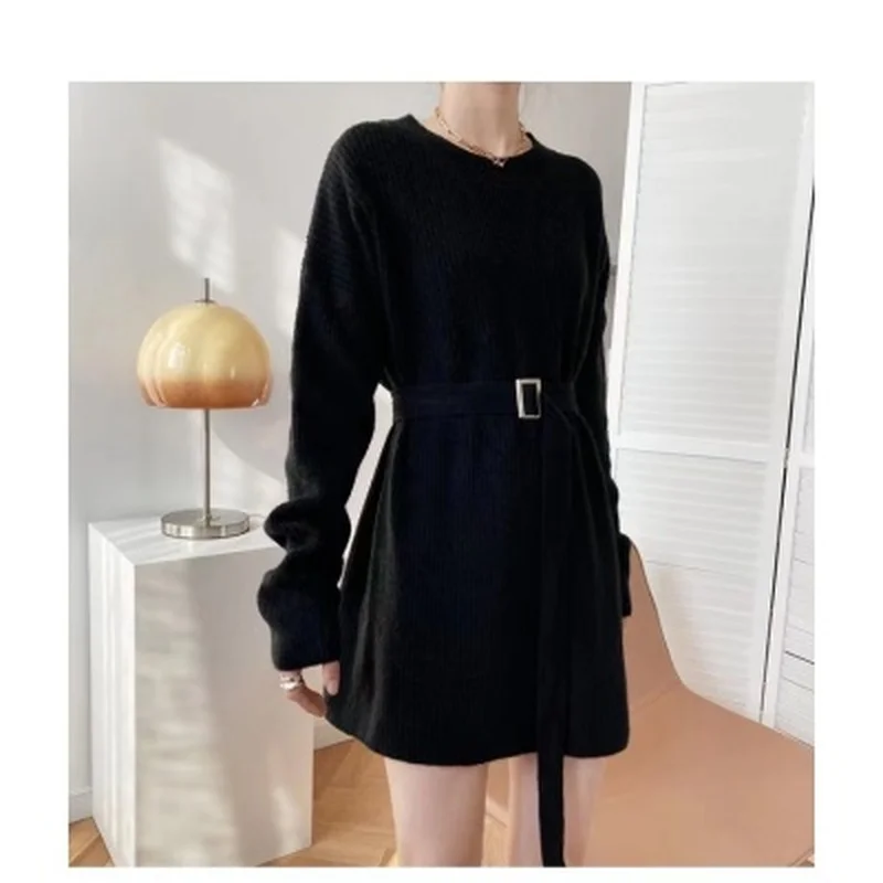 Женское трикотажное платье-свитер с круглым вырезом, свободного покроя
