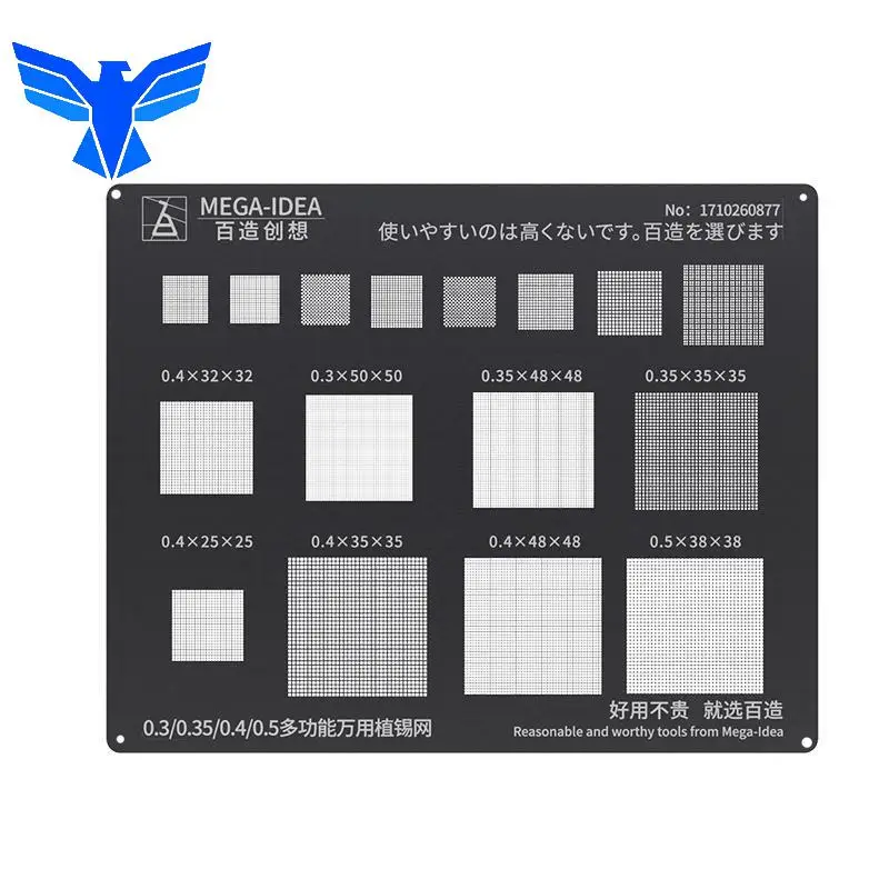Универсальный трафарет Qianli MEGA-IDEA BGA, черный многофункциональный трафарет с параллельным отверстием 0,30,350,4 мм, Оловянная сетка, инструмент для реболлинга BGA