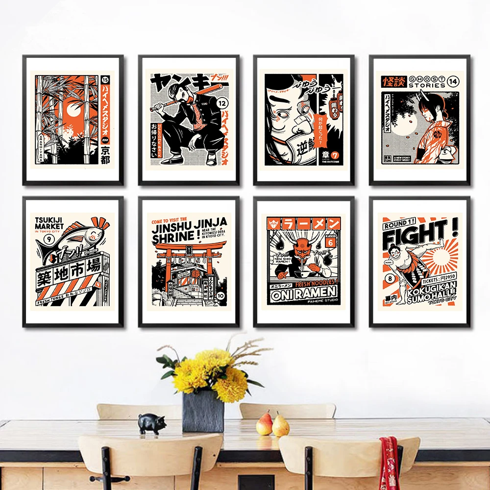 Аниме художественный постер призрачные истории борьба рамен холст живопись Винтаж японский рынок Tsukiji печать фотографии студия мальчик декор комнаты