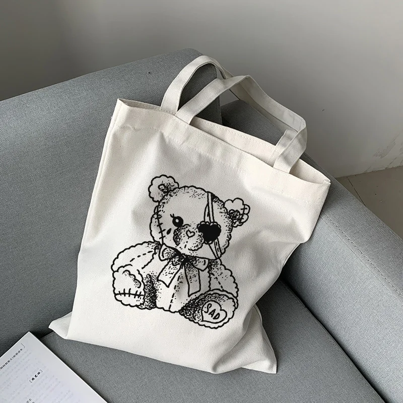 Японская темная сумка-шоппер, Холщовая Сумка y2k с готическими волнами, забавная мультяшная Вместительная женская сумка Ulzzang, женские сумки на плечо в стиле Харадзюку
