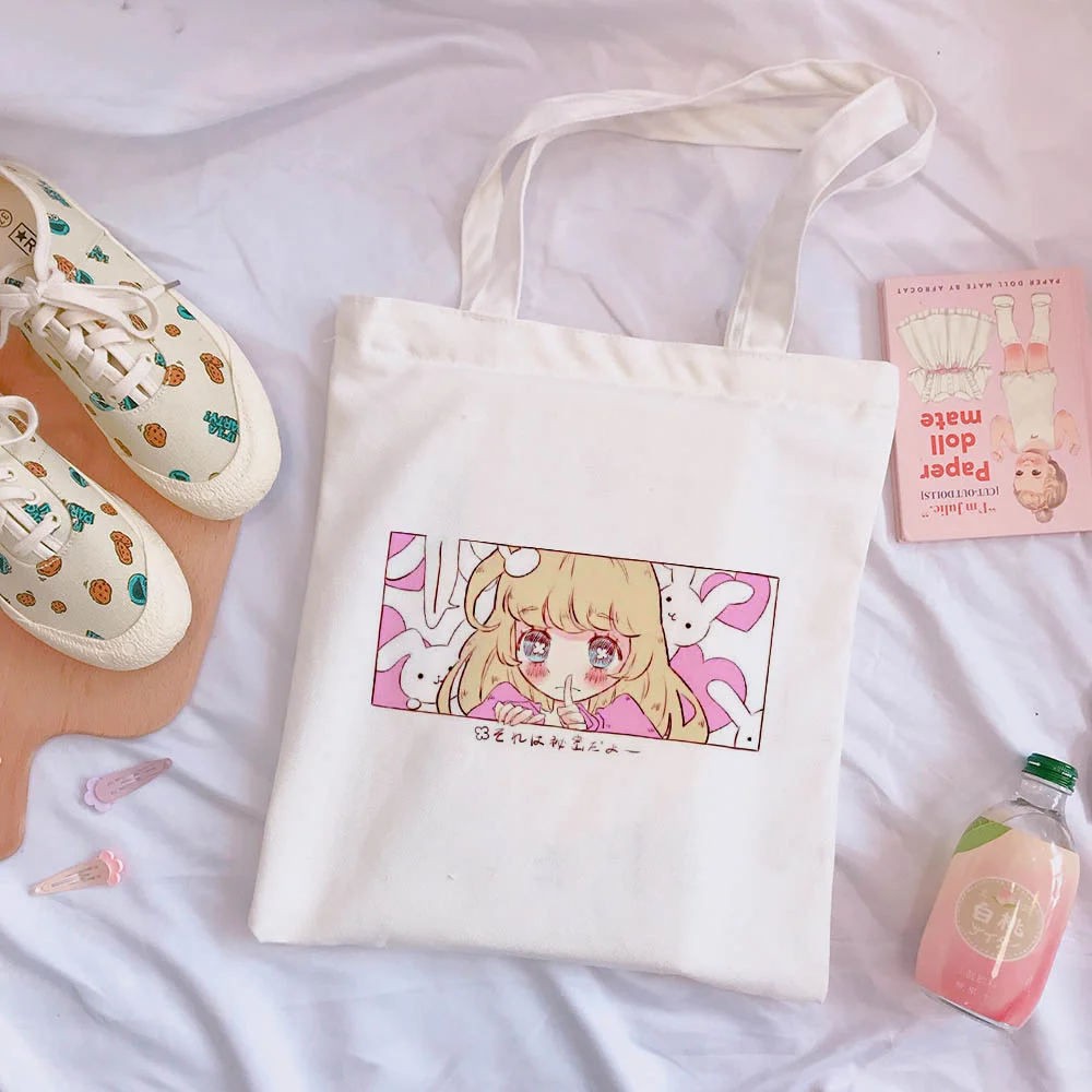 Винтажная Холщовая Сумка в японском стиле, повседневная Милая вместительная сумка-шоппер в стиле Харадзюку С аниме, мультяшный стиль, в стиле преппи, на ремне